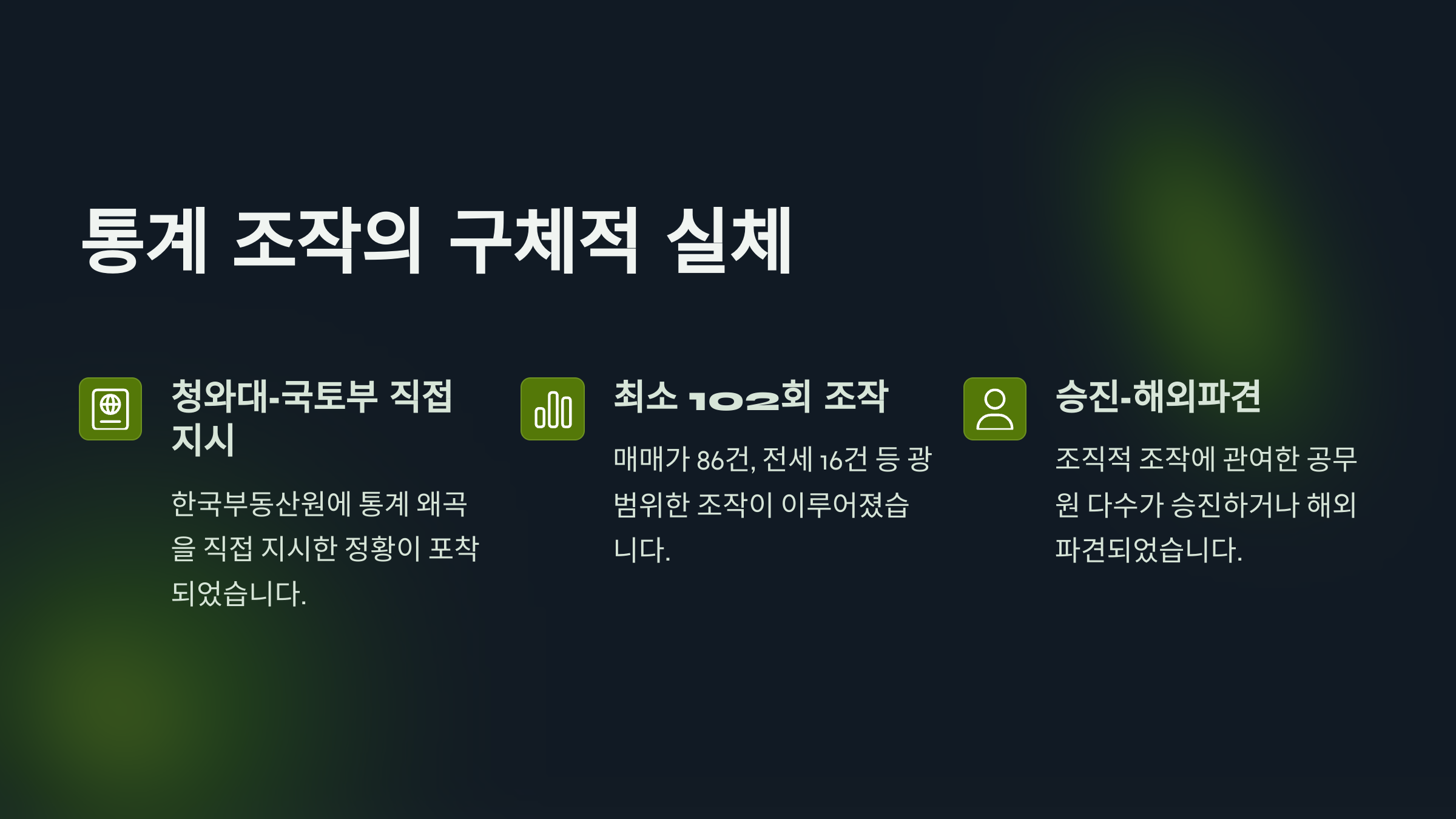 | 문제 발생 | 정부 주도 부동산 통계 수치 조작 |