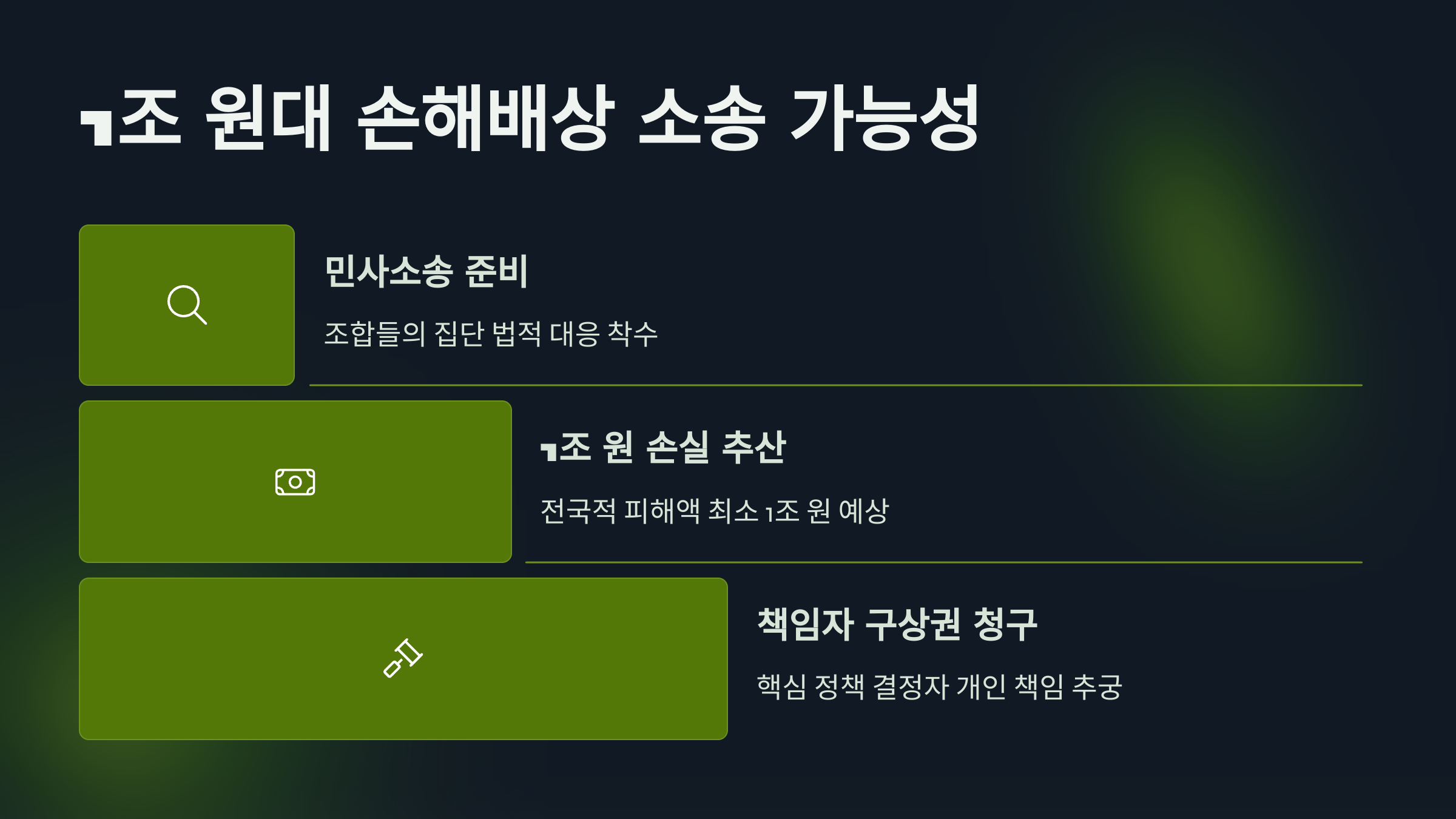| 경제적 손실 | 추정 최소 1조 원 이상, 민사소송 진행 중 |