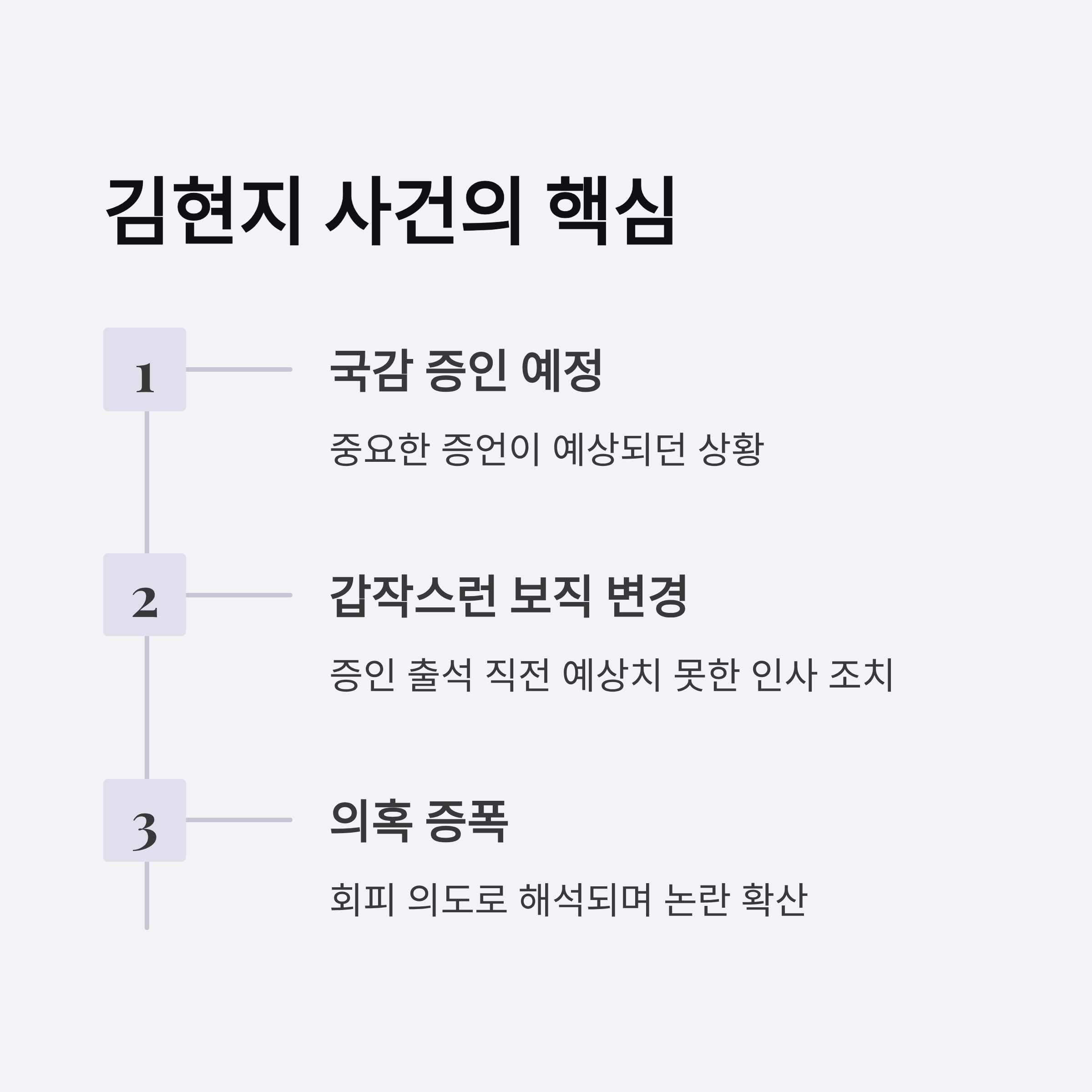 이 결정은 특히 당시 김현지가 특정 내부 사안에서 중대한 영향력을 미쳤다는 설과 맞물려 논란의 중심에 섰습니다. 이는 단순한 증인 변경이 아니라 정부의 신뢰와 직결된 정치적·법적 의미를 내포하고 있습니다.