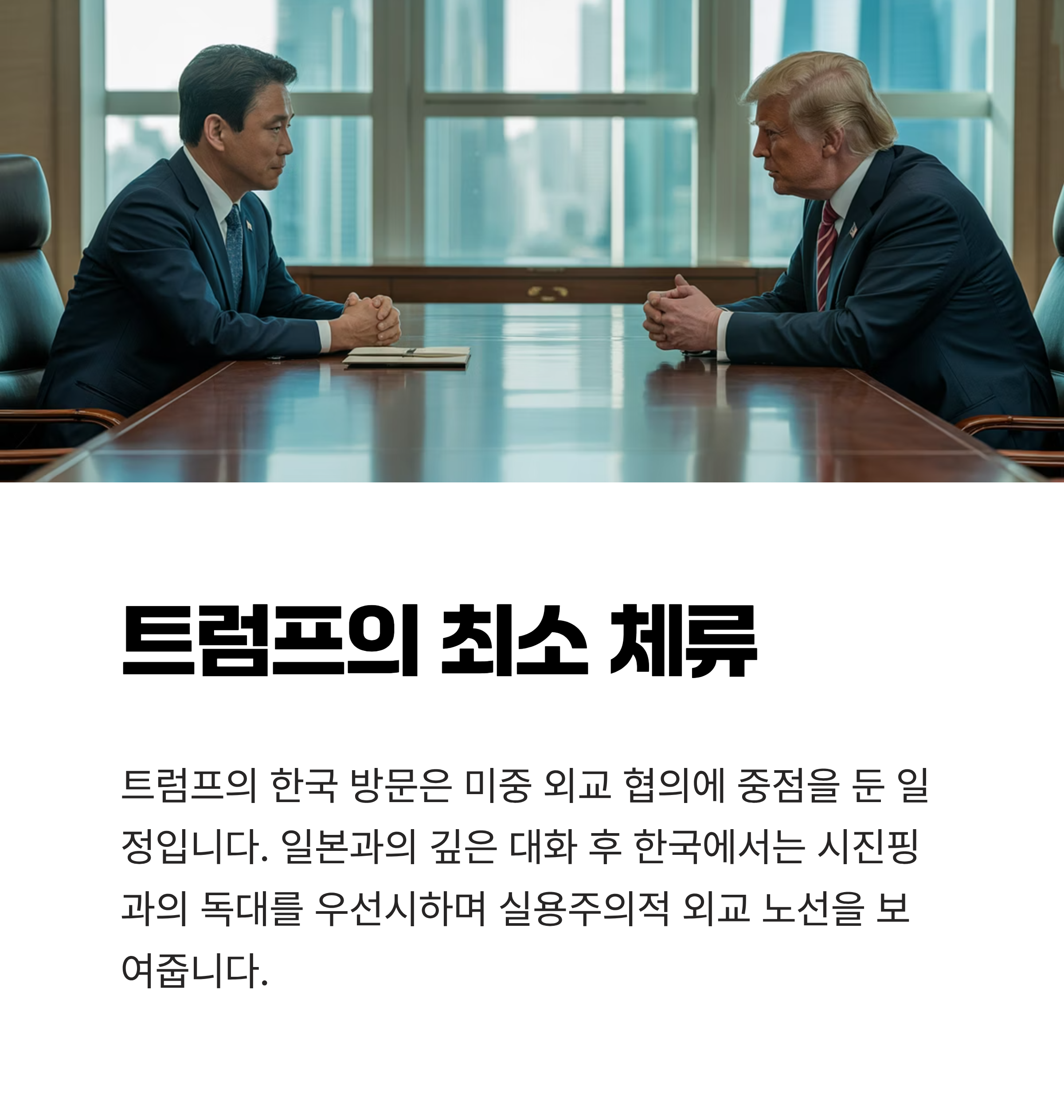- 트럼프의 전략적 아시아 순방과 한국 방문