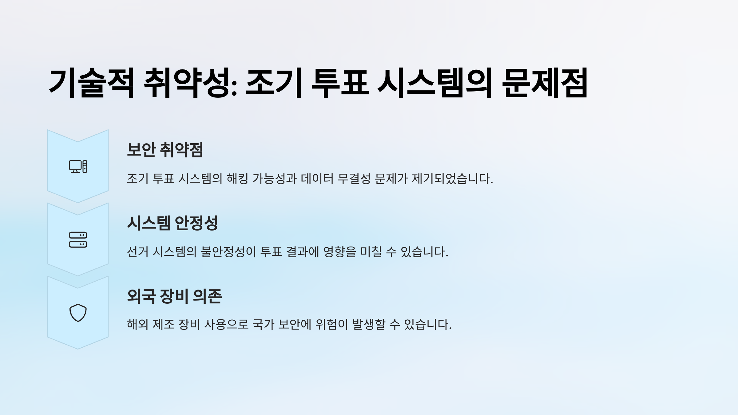 - 선거 시스템 취약성과 외부 개입 의혹