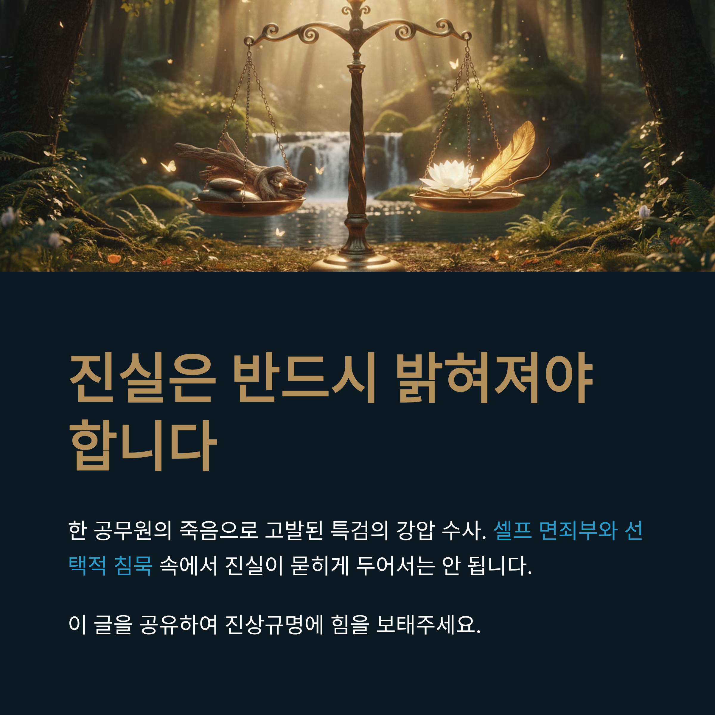 공무원의 비극적인 죽음과 그의 유서는 민중기 특검의 수사 과정에 심각한 문제가 있었음을 명백히 보여주고 있습니다.