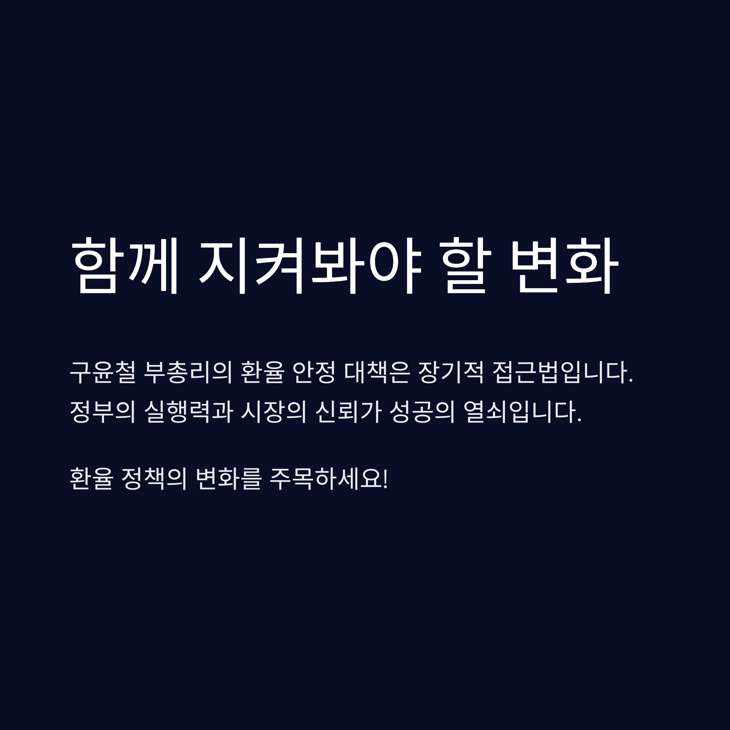 현재 구윤철 경제부총리의 환율 안정 대책은 해외 투자 확대와 국내 환율시장 간의 불균형을 개선하려는 장기적 접근법이다. 직접적인 시장 개입 대신, 수출기업 협력 및 국민연금과의 전략적 정책 실행을 중심으로 구체적인 해결 방안을 모색 중이다. 장기적인 관점에서 이는 환율 안정화와 구조적 체질 개선이라는 두 마리 토끼를 노릴 수 있는 접근법이다. 그러나 시민 및 시장의 신뢰 회복과 실질적 혁신을 위한 정부의 예고된 실행력 여부가 중요한 변수가 될 것이다.
