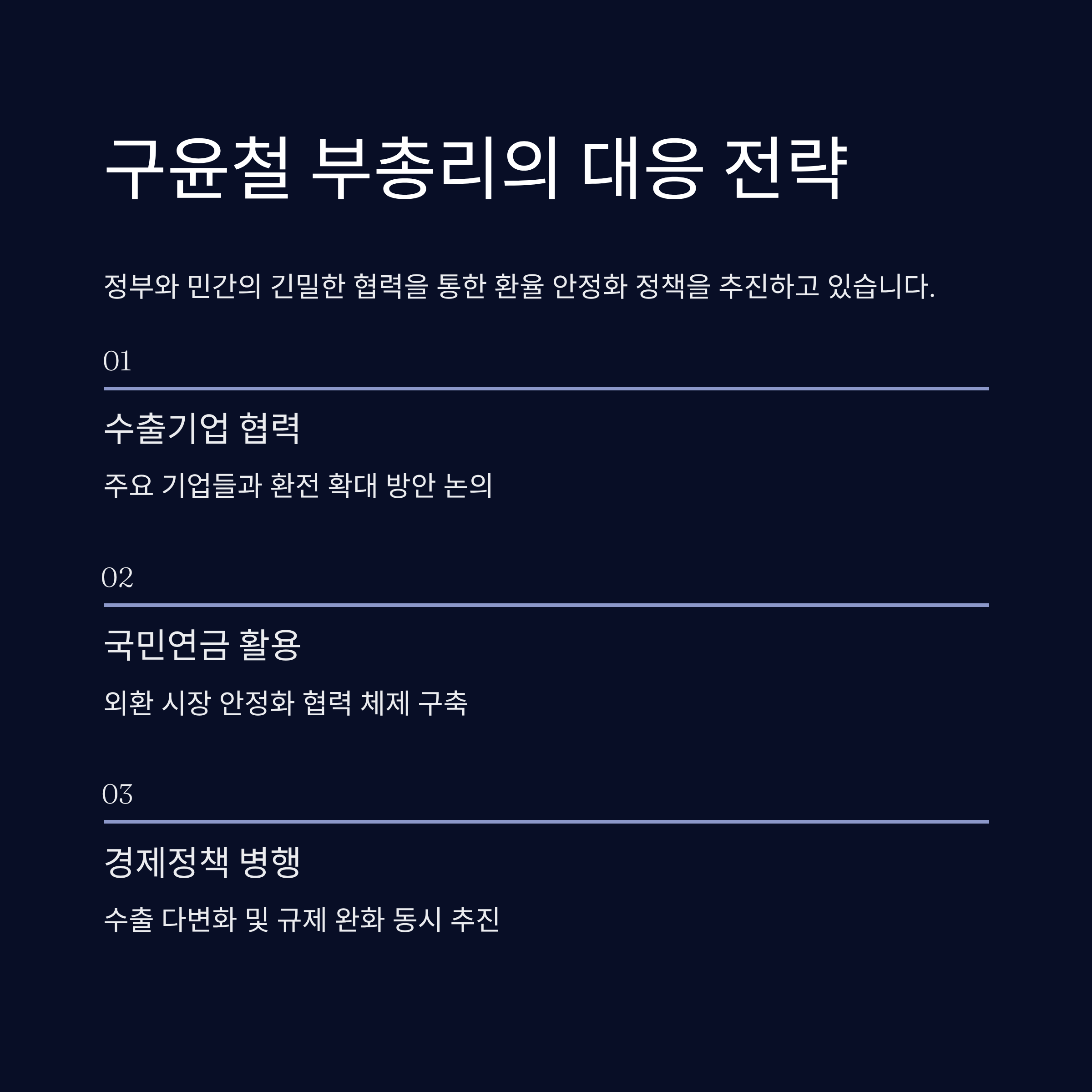 관련 태그: 구윤철, 외환시장 안정화, 원달러 환율, 국민연금 정책, 수출기업 협력, 경제정책