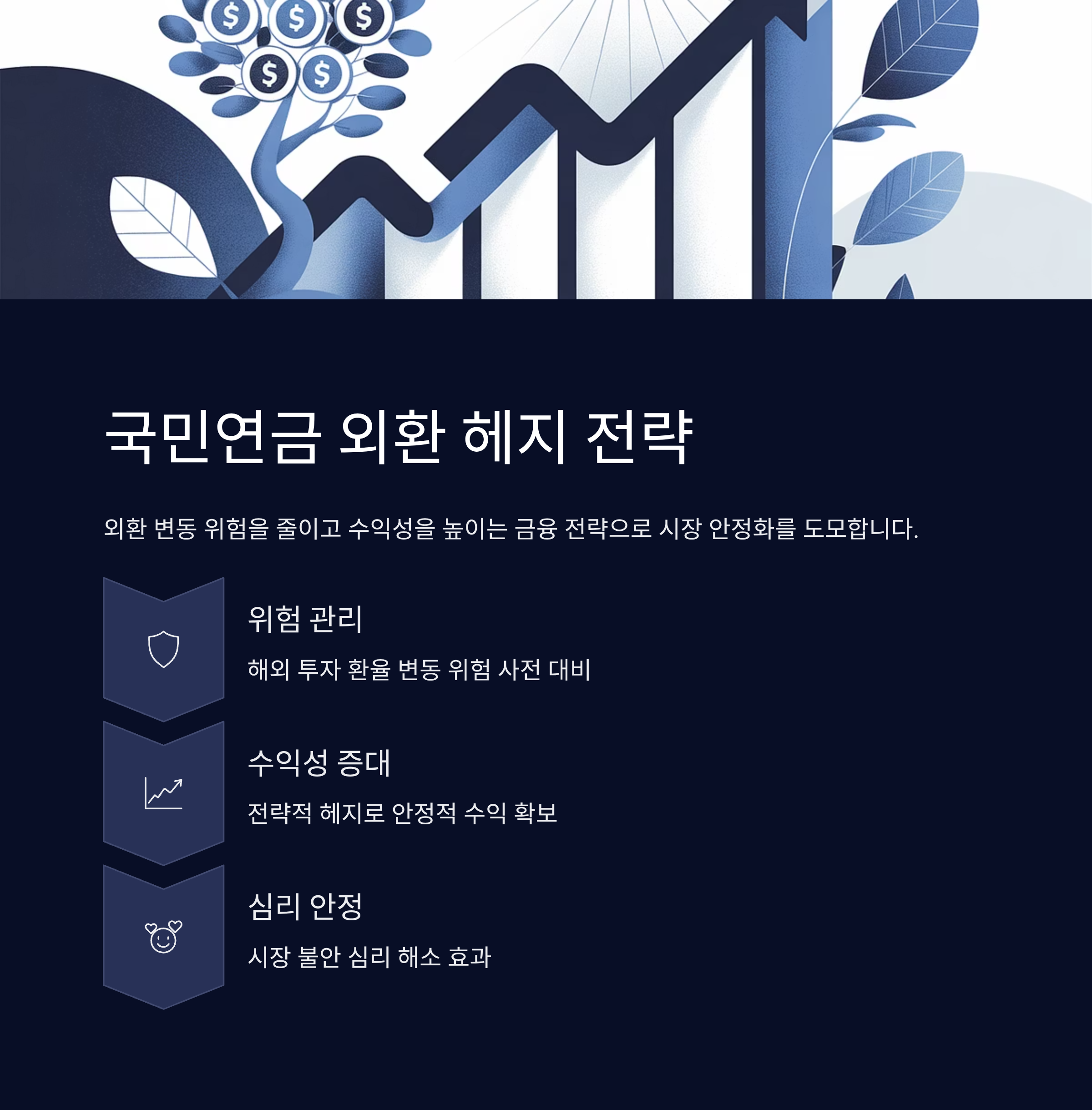 A. 외환 헤지란 국민연금이 해외 투자를 하면서 생길 수 있는 환율 변동위험을 줄이기 위해 미리 대비하는 금융 전략입니다.