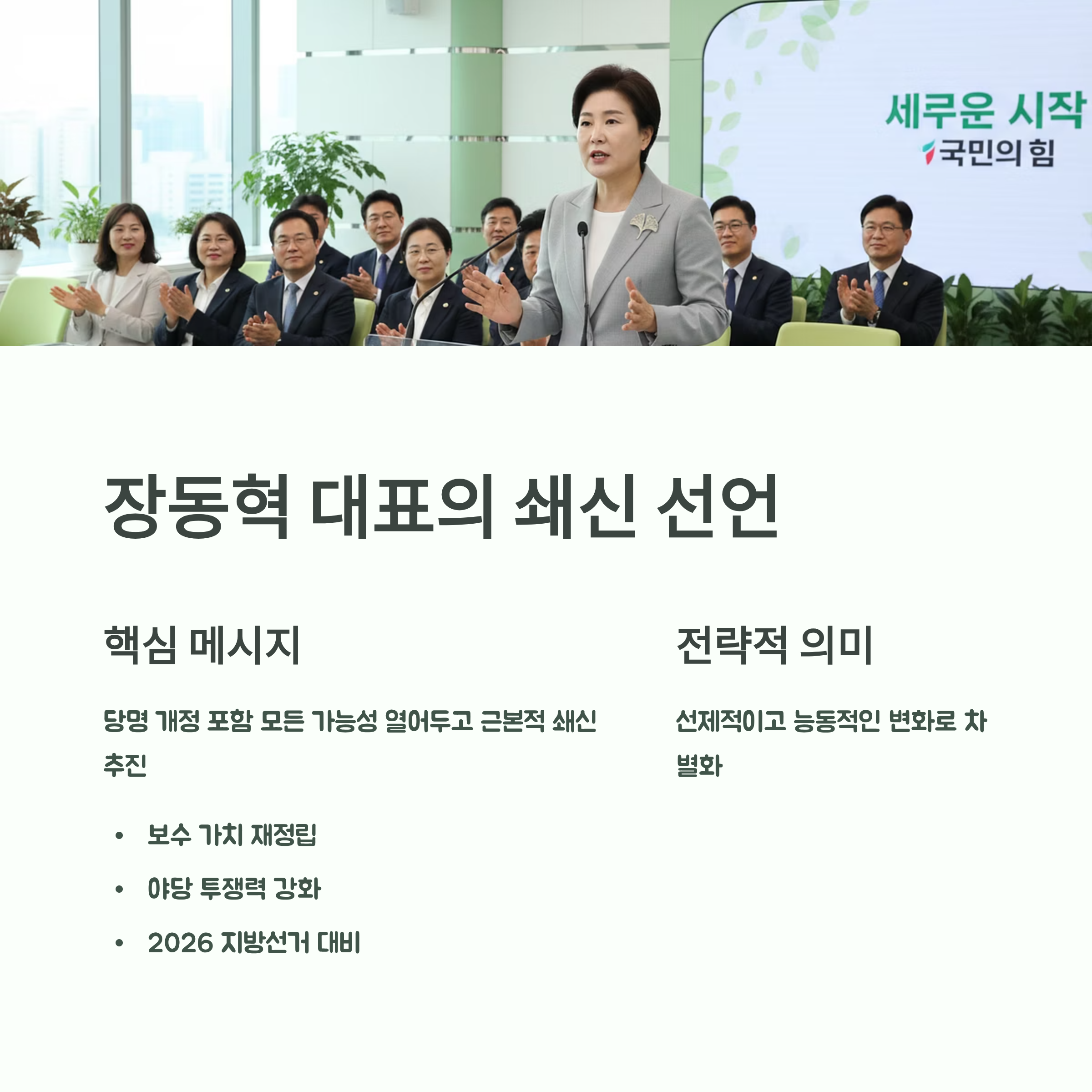 - 2. 핵심요약: 장동혁 대표의 쇄신론과 보수 정체성 확립을 위한 필수 과제