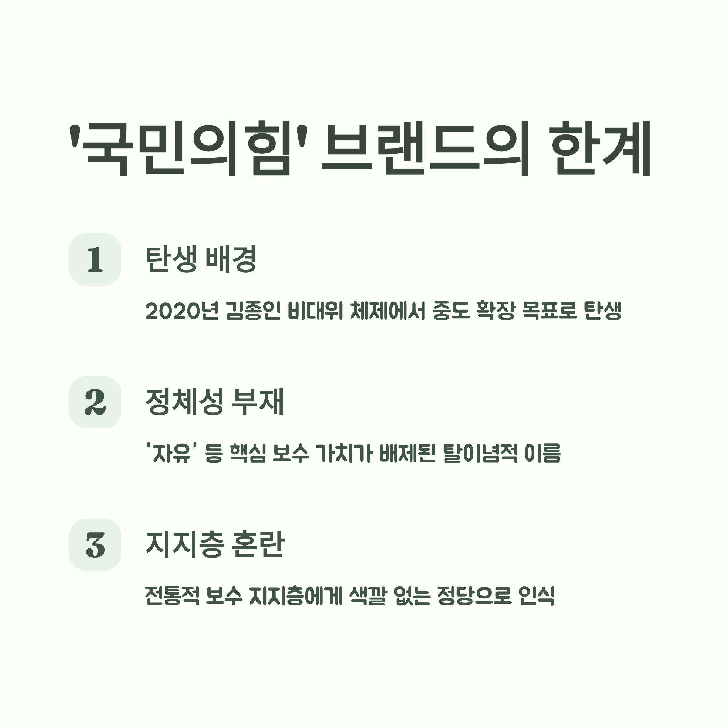 1. '국민의힘' 브랜드의 실패와 정체성 혼란의 극복
