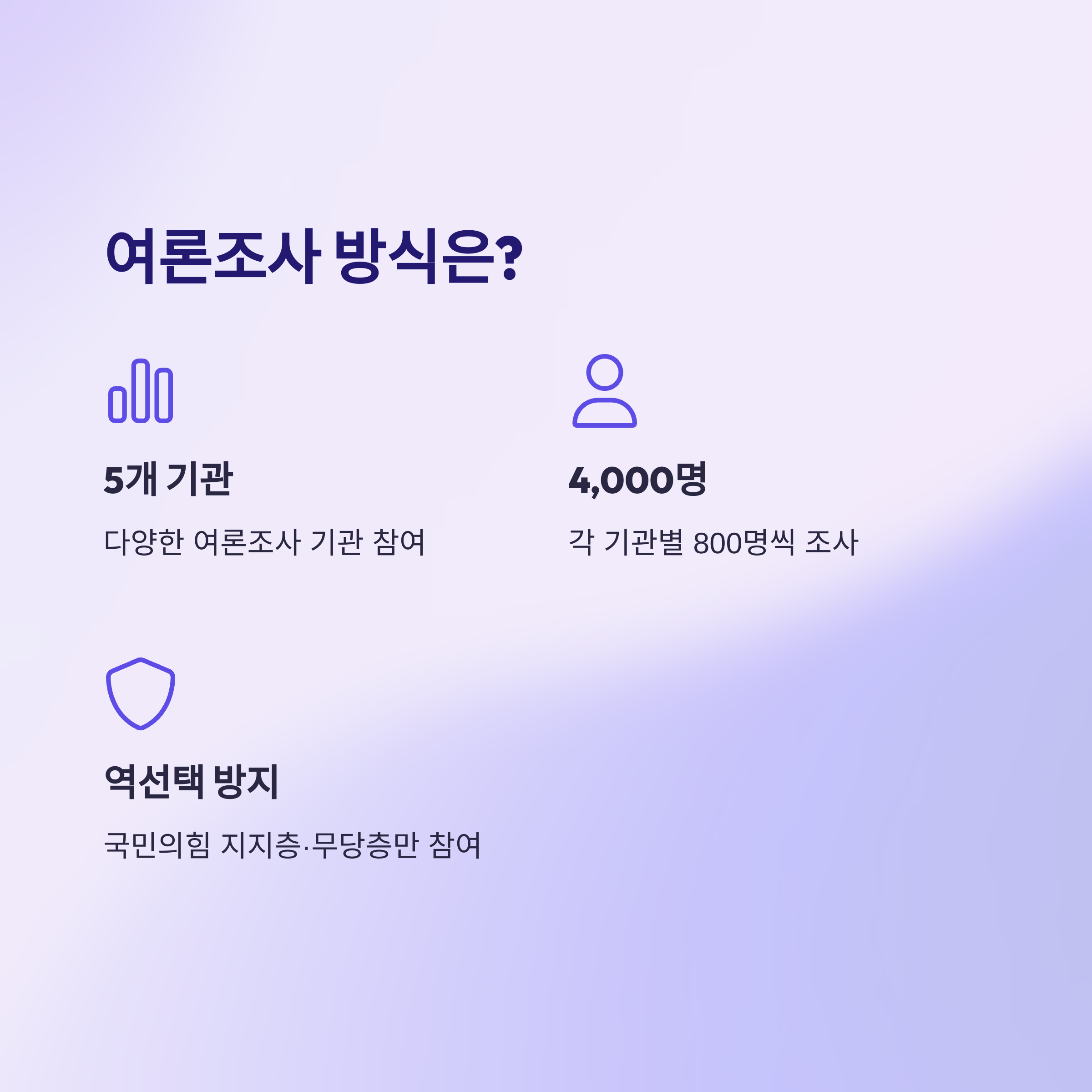 - 5개 여론조사기관의 조사로 총 4,000명이 경선 여론조사에 참여했습니다.