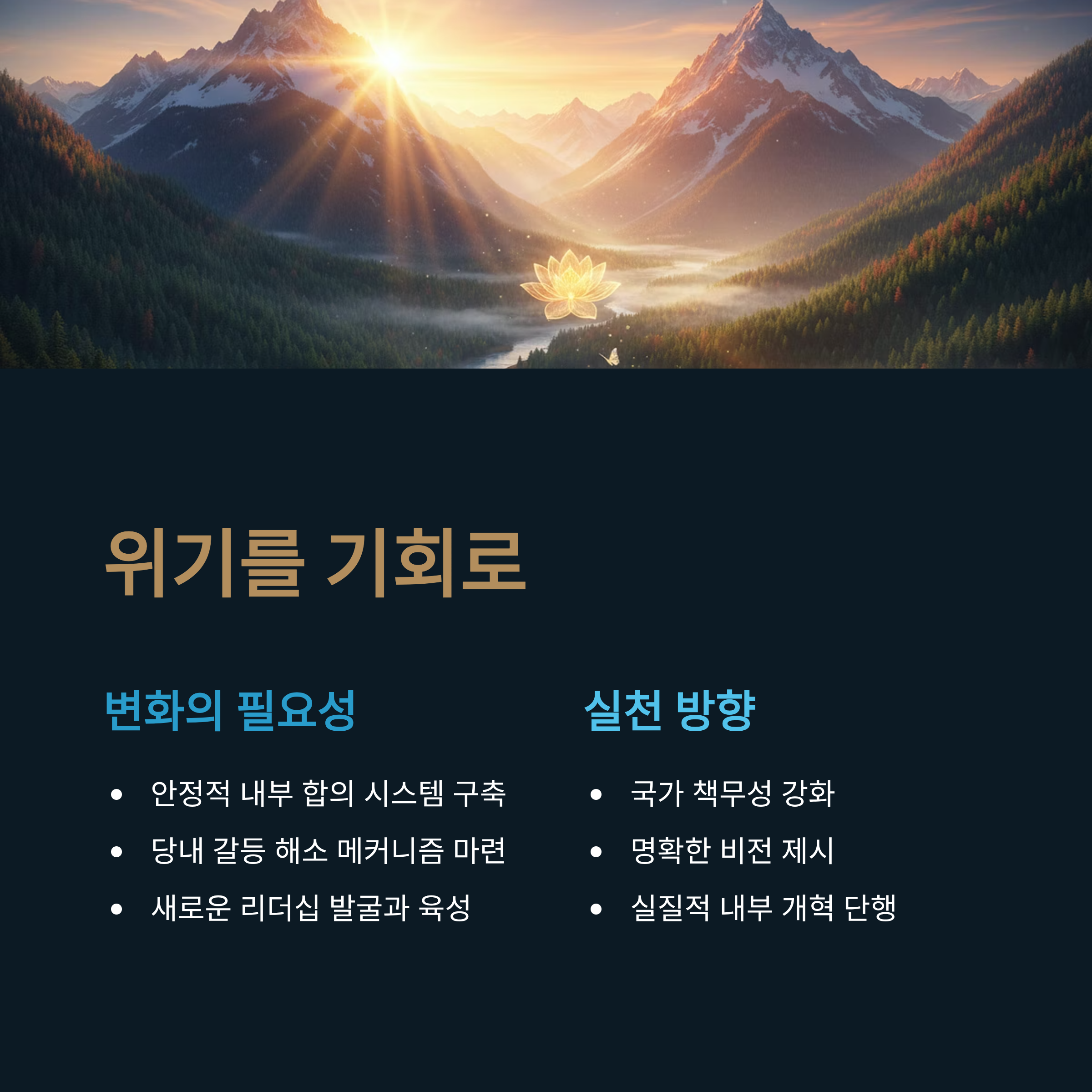 사과 논란은 위기일 뿐만 아니라 변화의 기회로도 볼 수 있습니다. 안정적이고 실질적인 내부 합의 시스템을 마련해 당내 갈등을 줄이고, 국민의 목소리를 직접 반영하는 정책적 우선순위를 설정하는 것이 필요합니다. 또한, 정당의 국가 책무성을 강화하고, 국민과 공유할 수 있는 명확한 비전을 제시해야 합니다. 새로운 리더십과 내부 개혁을 통해 보수정당이 본질적으로 바뀌지 않으면, 대중적 신뢰 회복은 어려울 것입니다.