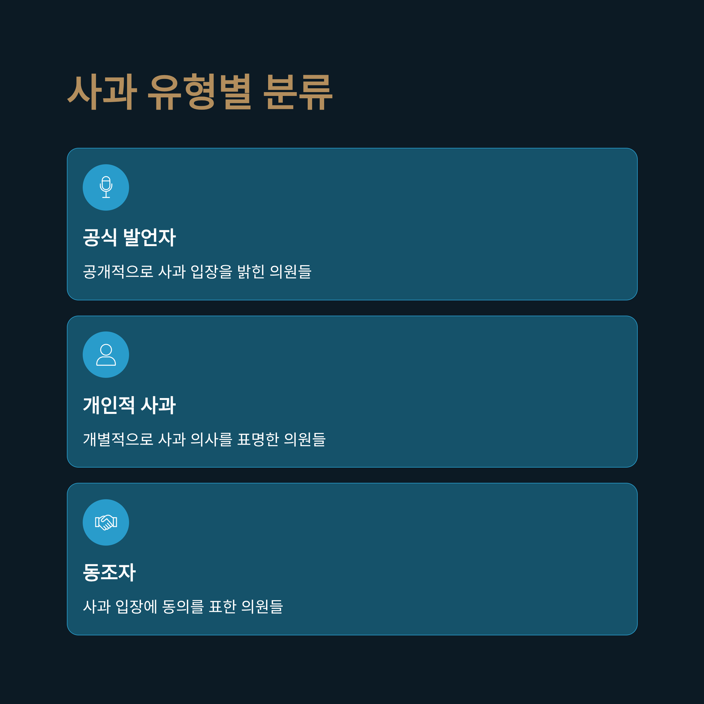 | 3. 명단 외 강력 사과 표시 | 3명 | 조경태, 김예지, 정성국 | 사과 성명서에는 없으나, 개별 강력 사과 |