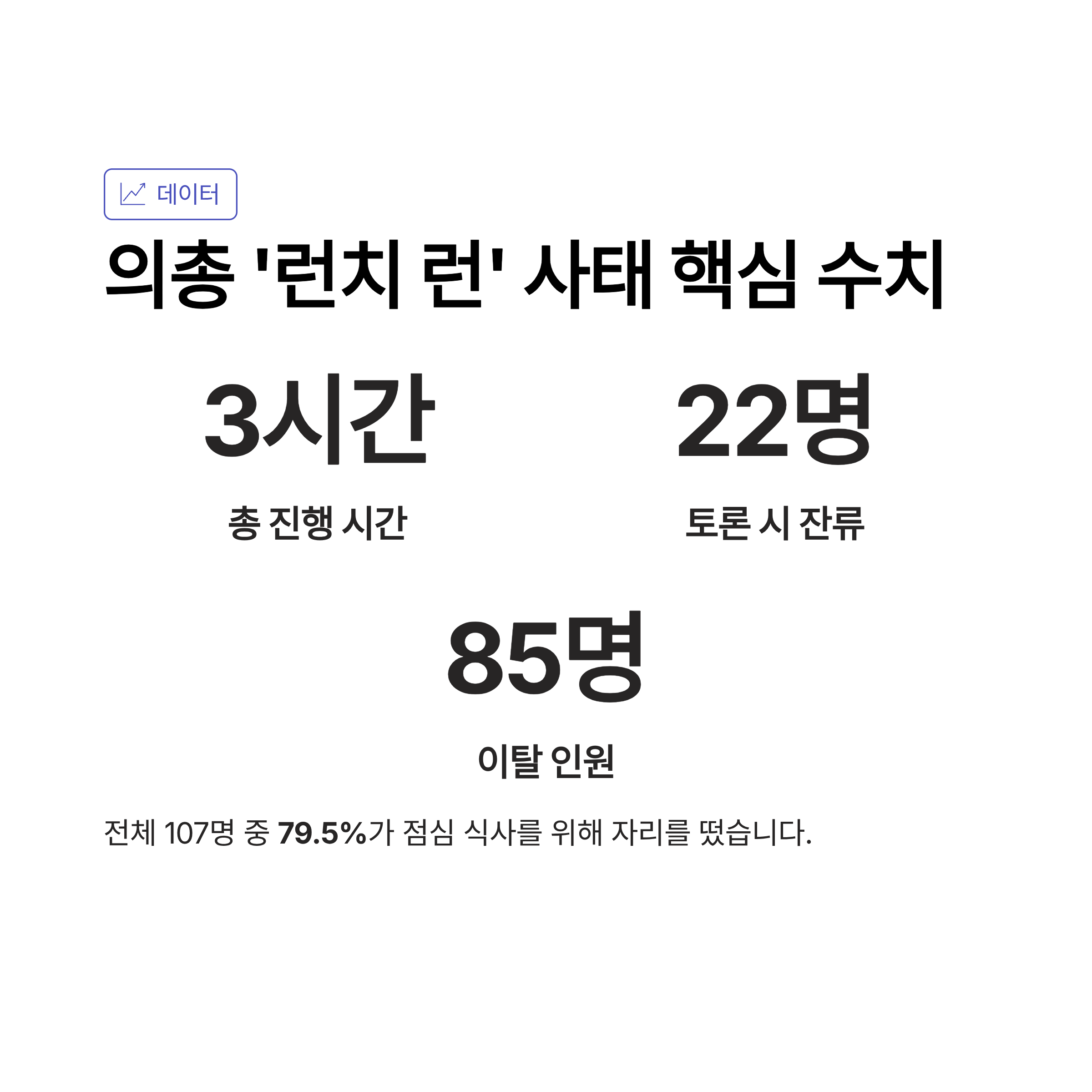 | 토론 시작 시점 참석 인원 | 22명 (전체 107명 중 20.5%) |