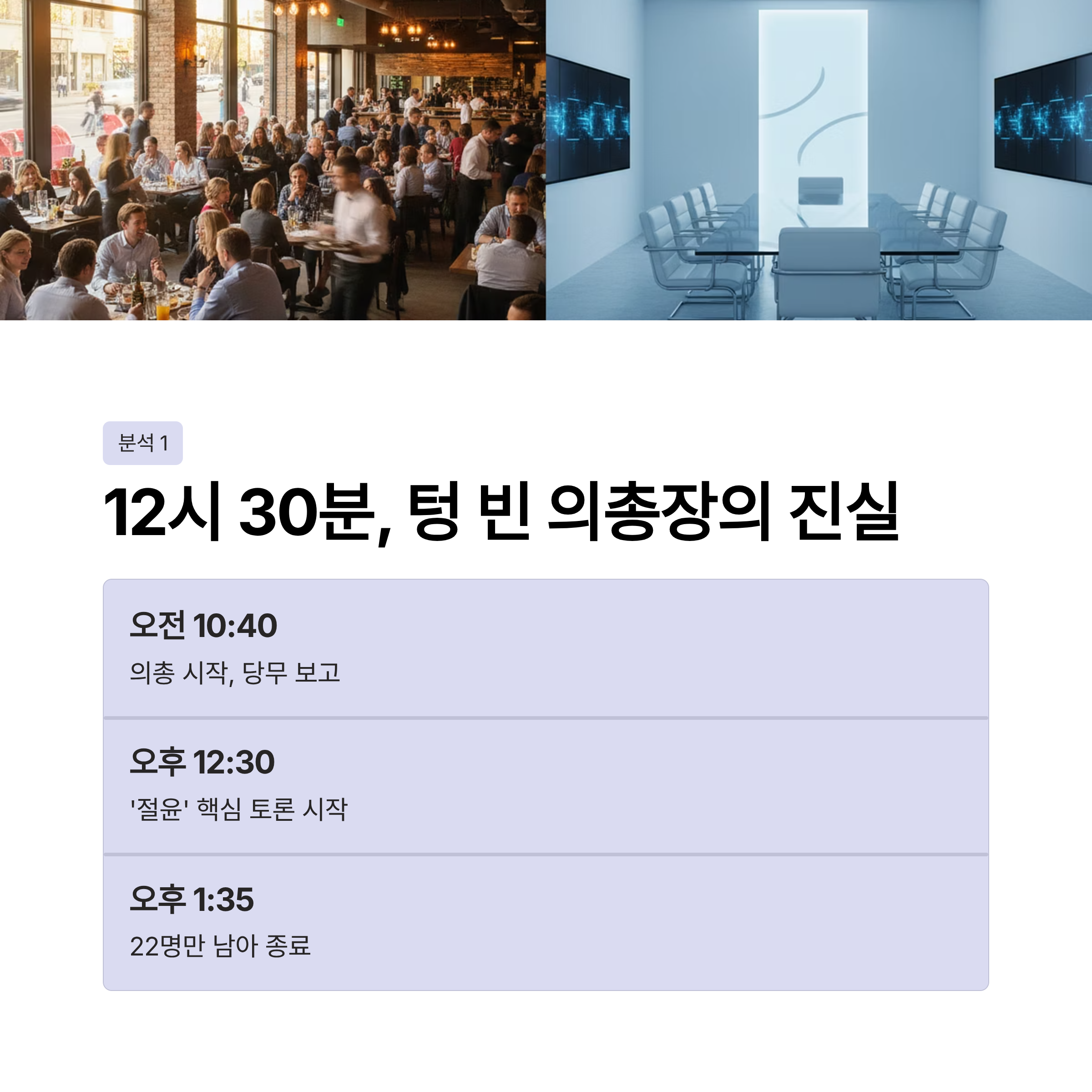 - 3. 분석 1: 팩트체크, 의총장 텅 빈 12시 30분의 진실과 데이터