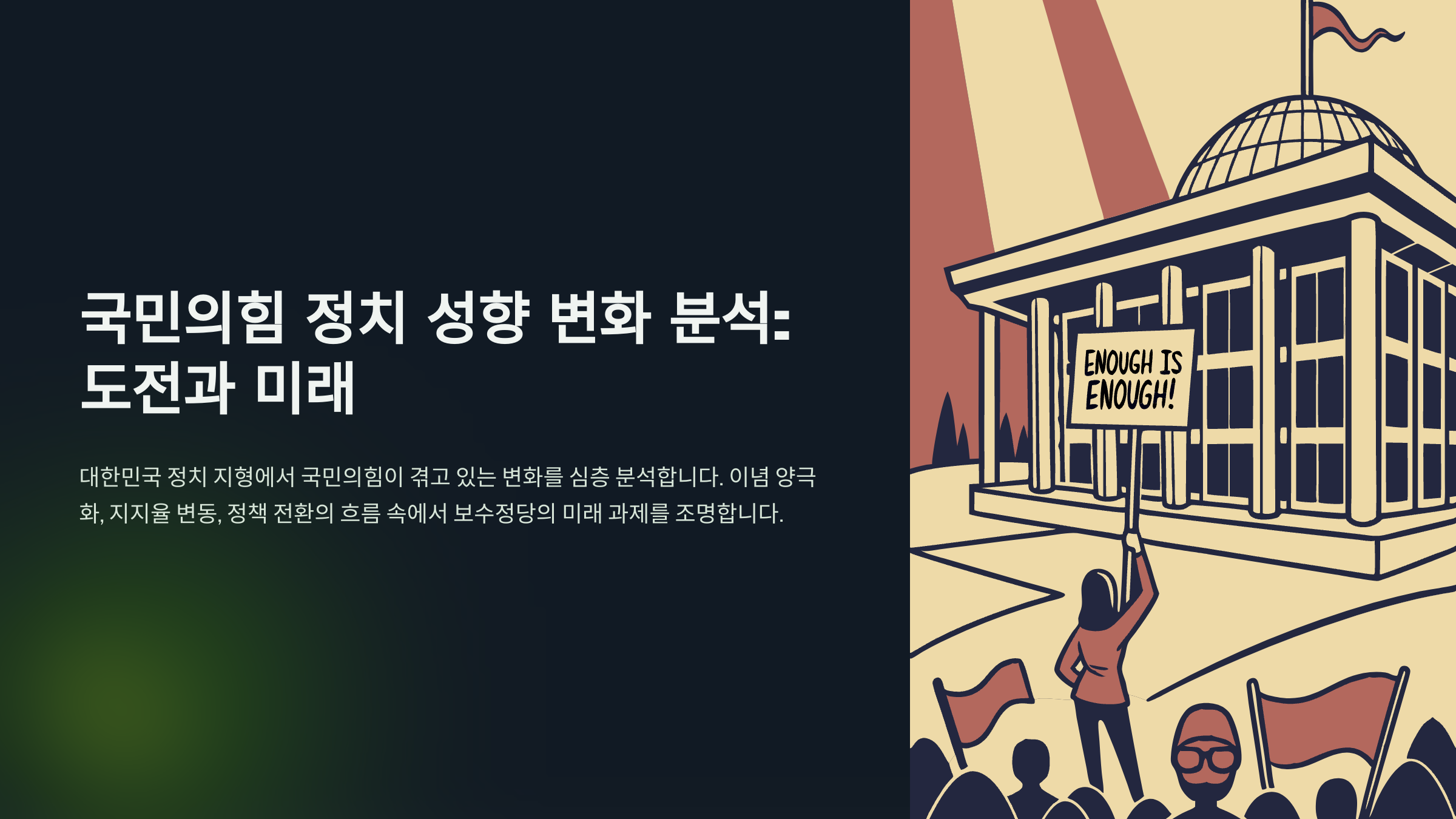 한국 정치에서 보수 정당의 대표 격인 국민의힘은 국민의 관심 속에서 항상 중추적인 역할을 해왔습니다. 최근 정치 지형의 변화, 특히 윤석열 전 대통령 파면과 대선 이후 국민의힘의 지지율 및 성향 변화는 높은 주목을 받고 있는 상황입니다. 이러한 변화는 단지 정당 내부 문제에 국한되지 않고, 한국 사회 전반의 정치적 양극화와 지역적 상황, 그리고 젊은 세대의 정치적 인식 변화까지 다각적인 요인에 의해 영향을 받은 결과라 볼 수 있습니다.