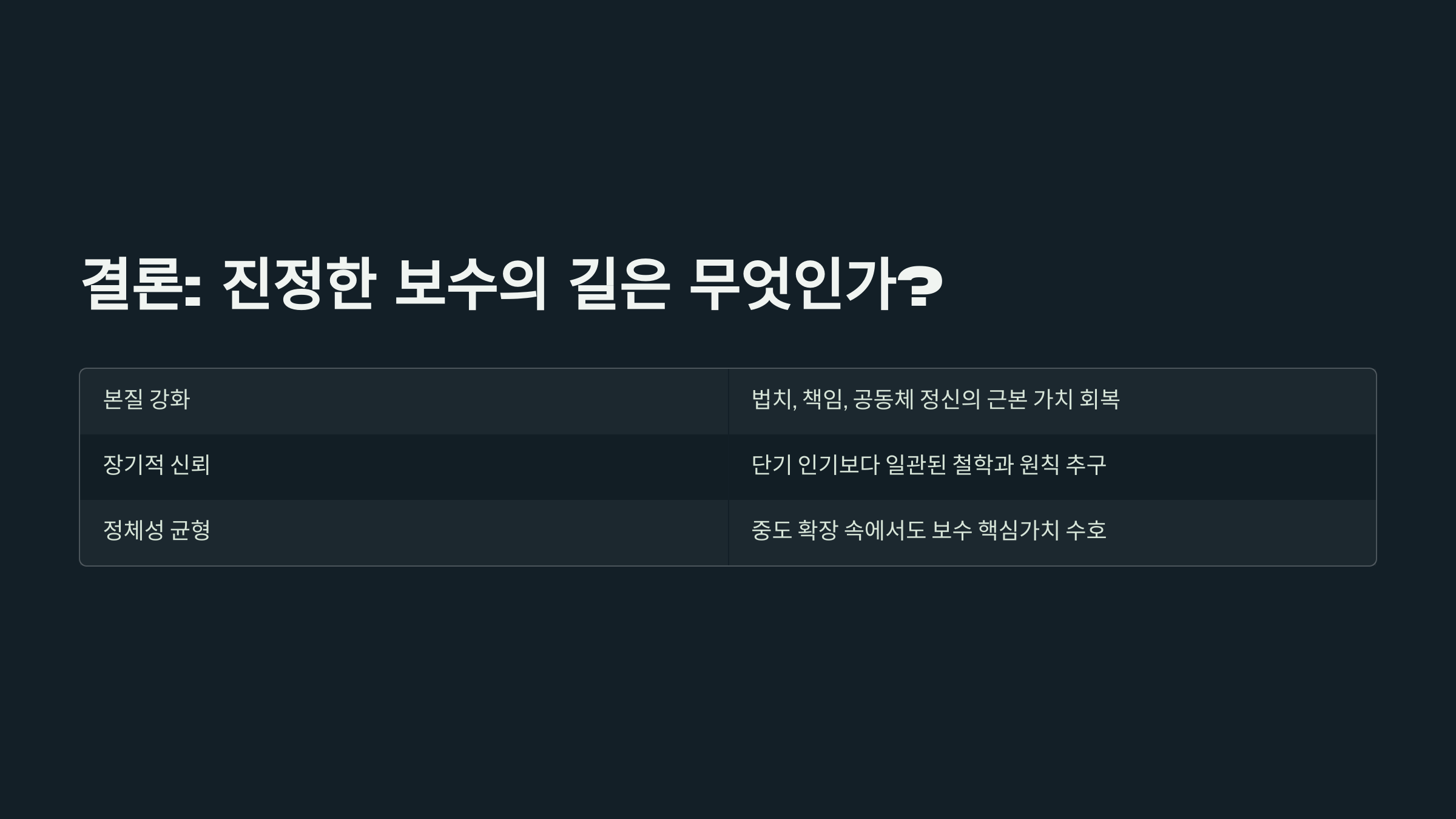 - 결론: 진정한 보수의 길, 해답은 무엇인가?