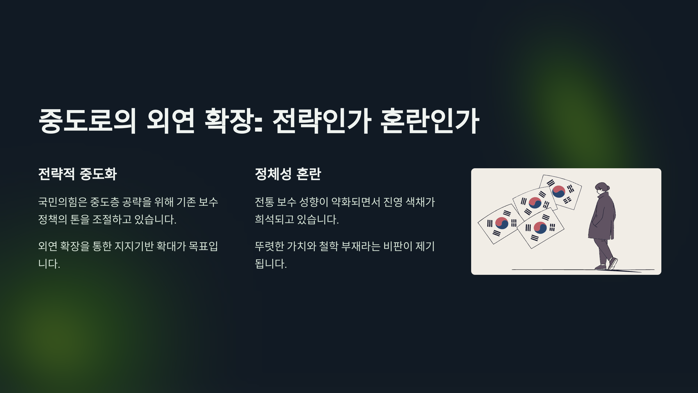 - 국민의힘의 정체성 변화: 중도로의 외연 확장