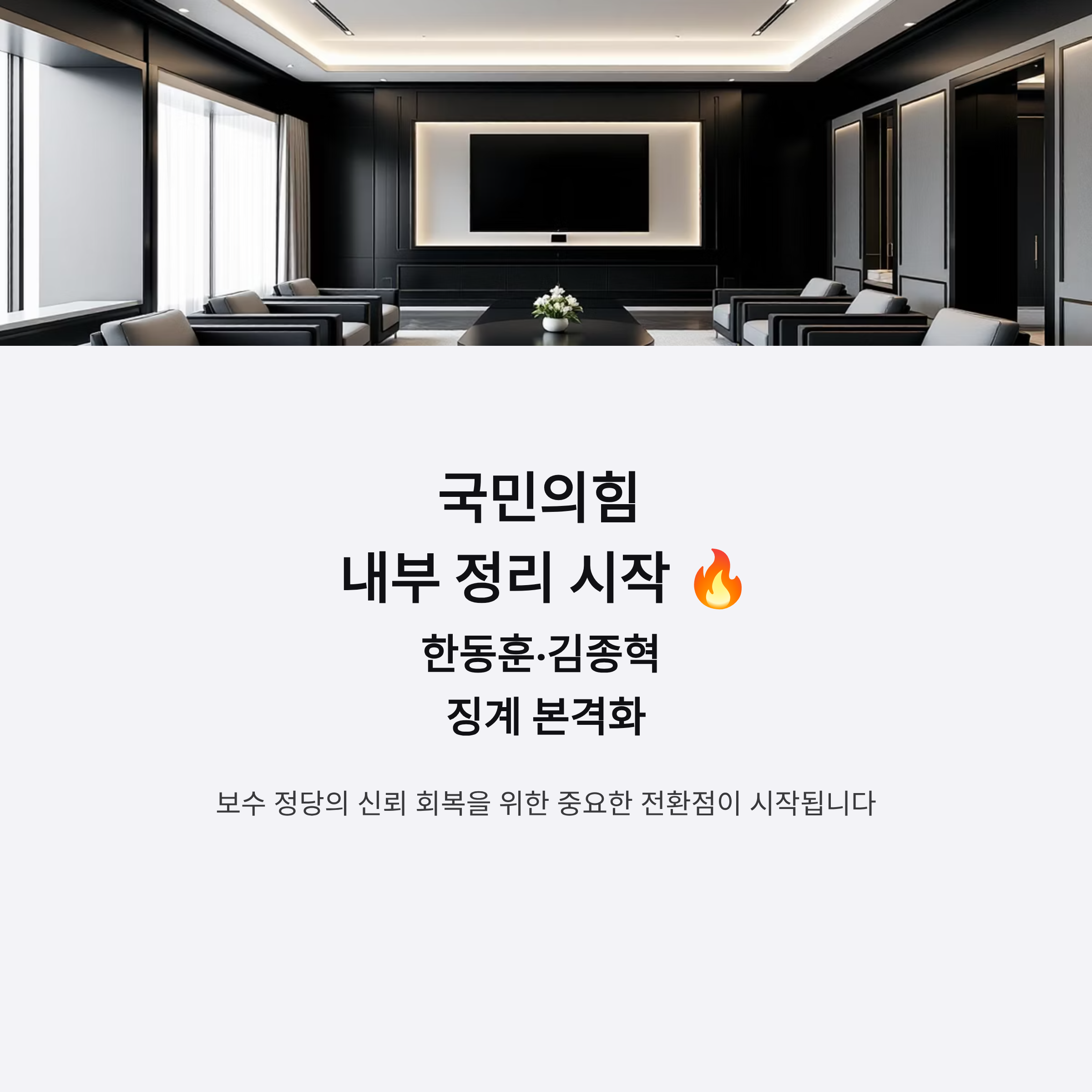 국민의힘은 현재 친환계로 불리는 주요 인물들을 정리하면서 보수 정당으로서의 본래 가치를 되살리며 신뢰를 회복하려 하고 있습니다. 정치적 가치와 윤리성을 재정립하며 당의 방향성을 분명히 함으로써 지지층과 대중의 공감을 얻으려는 움직임이 확연합니다.