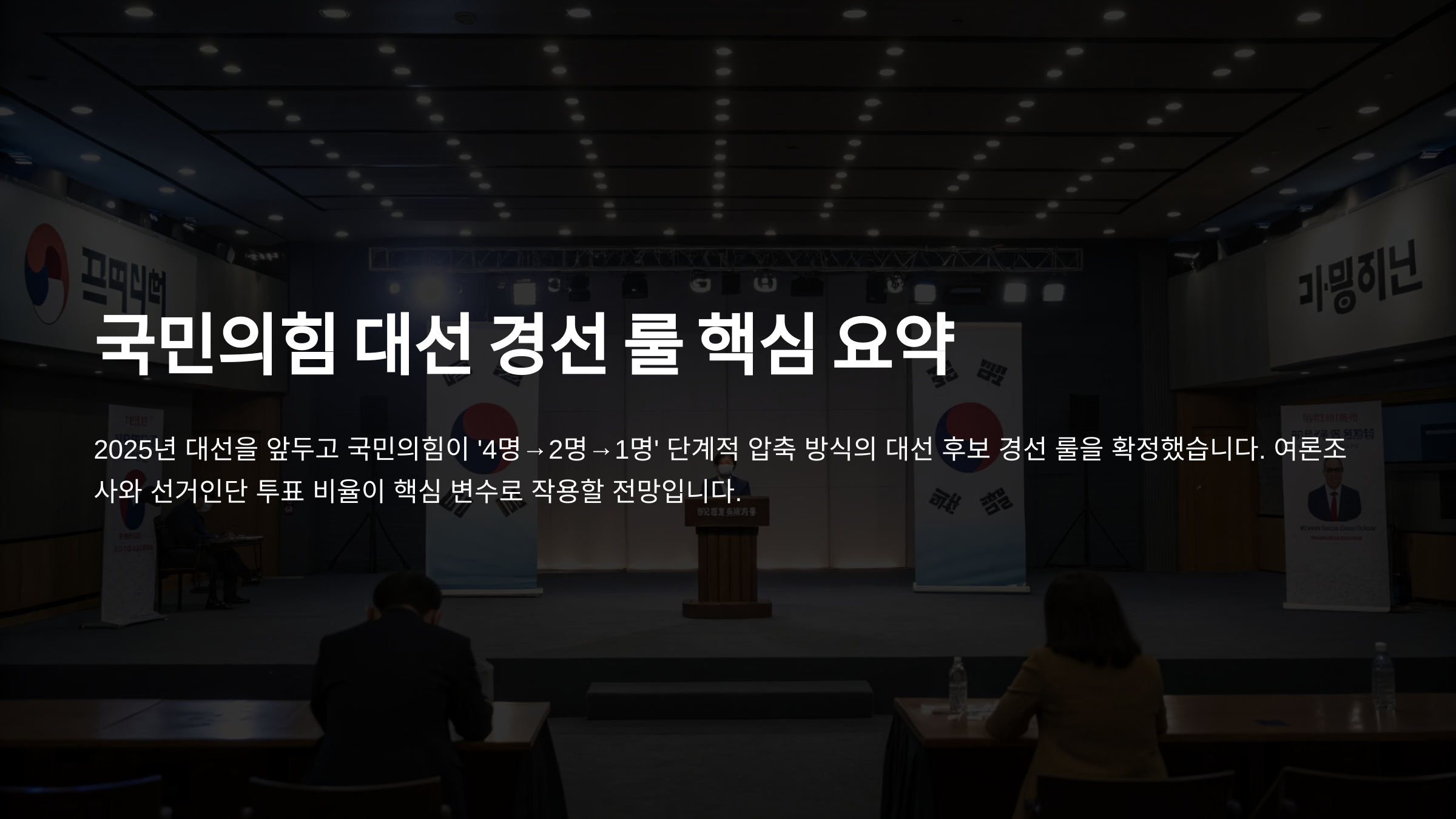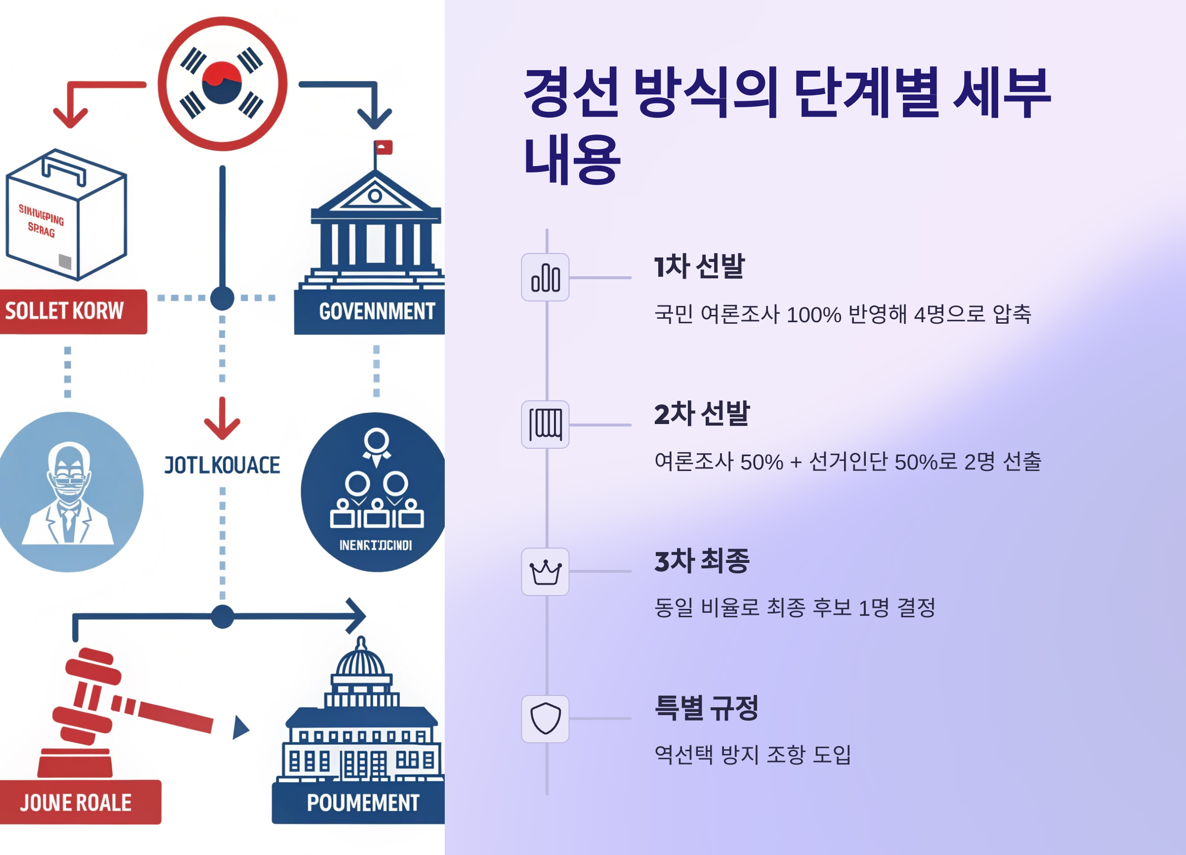 2025년 대선을 앞두고 국민의힘이 대선 후보 경선 룰을 최종 확정했습니다. 이번 경선 방식은 다층적 구조를 지닌 만큼 각 후보의 전략에 큰 영향을 미치고 있으며, 향후 당내 역학 관계의 변화와 맞물려 큰 정치적 파장을 예고하고 있습니다. 특히 1차부터 3차까지 단계별로 여론조사와 선거인단 투표가 병행되며, 특정 조건 하에서는 결선투표가 생략될 수 있다는 점이 주요 포인트입니다.