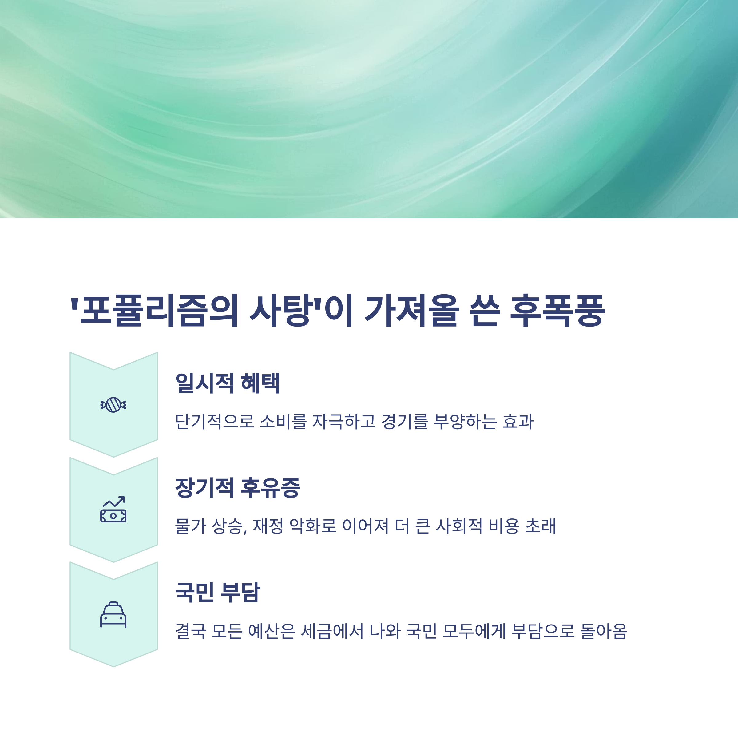 A. 단기적인 인기와 소비 자극만을 노린 일회성 정책이기 때문입니다. 국민 세금으로 혜택을 주고, 그로 인해 재정 악화를 초래하는 구조이기에 비판받습니다.
