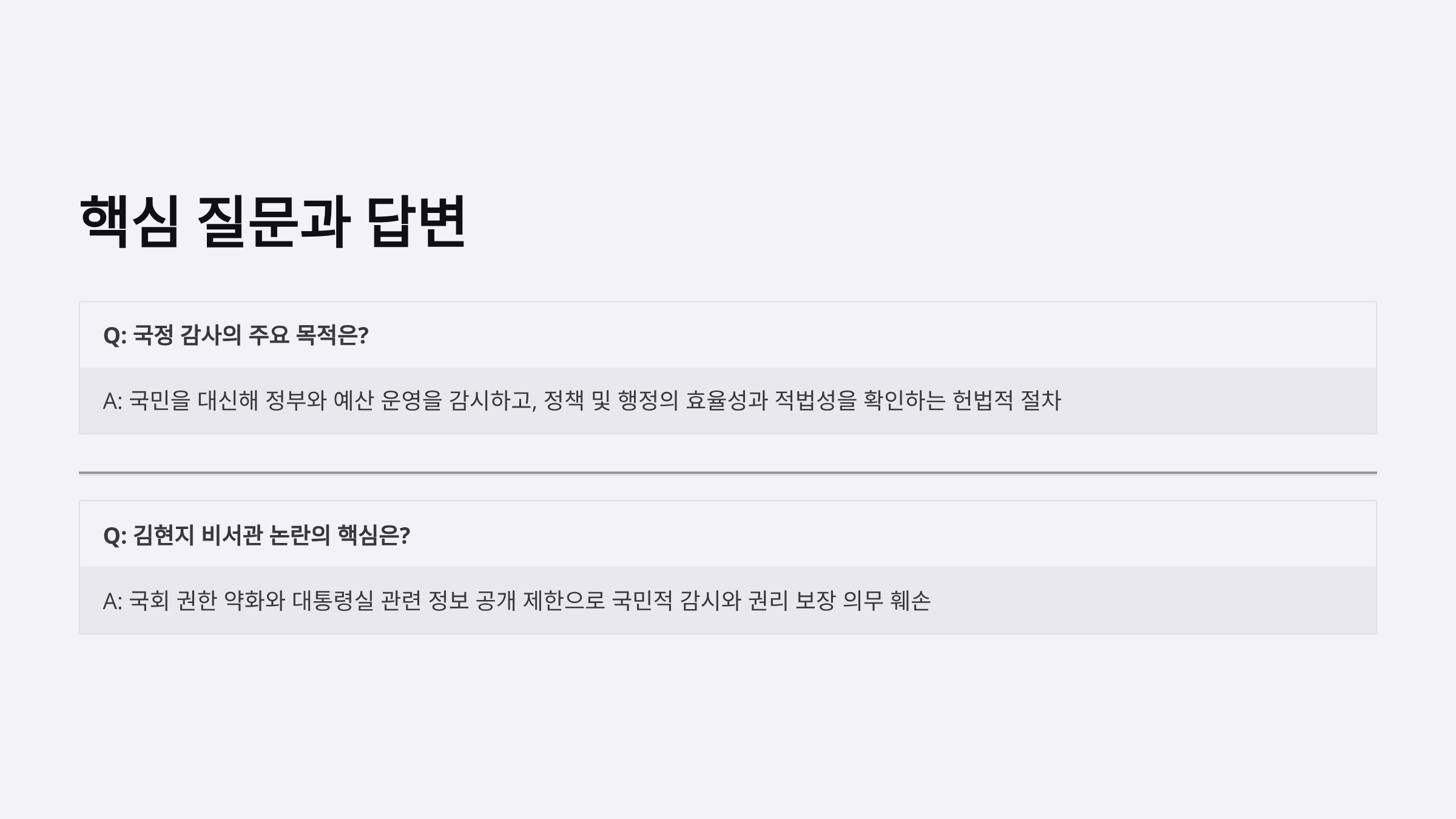 관련 태그: 국정감사, 김현지, 대통령실 논란, 방탄 정치, 민주주의 위기, 투명성, 국민의 알 권리