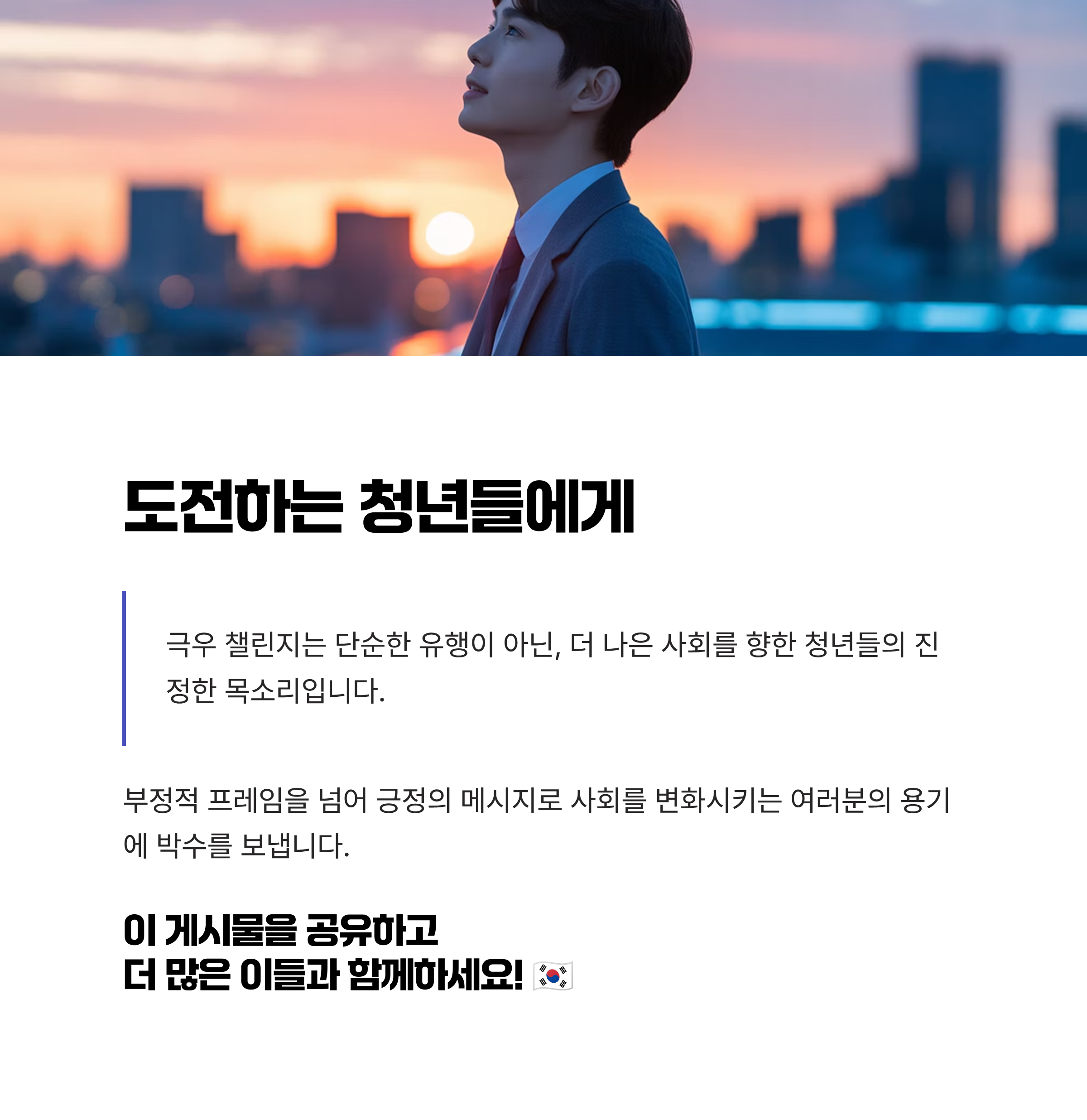 2. 청년들은 '극우 챌린지'를 통해 이 용어를 겸허히 수용하며 새로운 긍정적 메시지를 전달합니다.