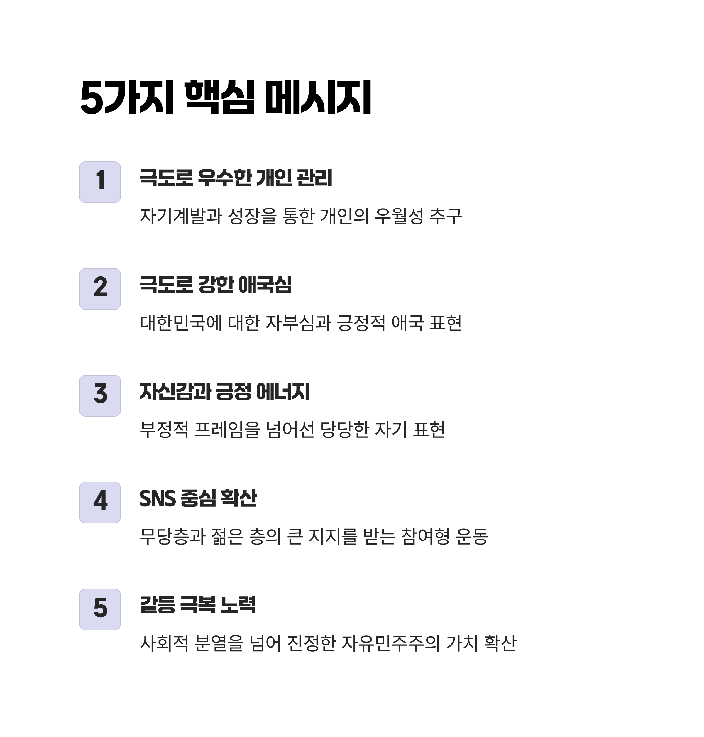이에 대해 맞선 젊은 세대들은 극우를 우월성을 상징하는 긍정적 메시지로 재정의하였으며, 이를 통해 자신감과 애국심을 표현하고 있습니다. 특히 소셜 미디어에서 활발히 전개된 이 움직임은 빠른 속도로 대중적 관심을 얻고 있으며, 참여형 해시태그 챌린지로 이어지며 자기 표현과 운동의 확산을 증명하고 있습니다.