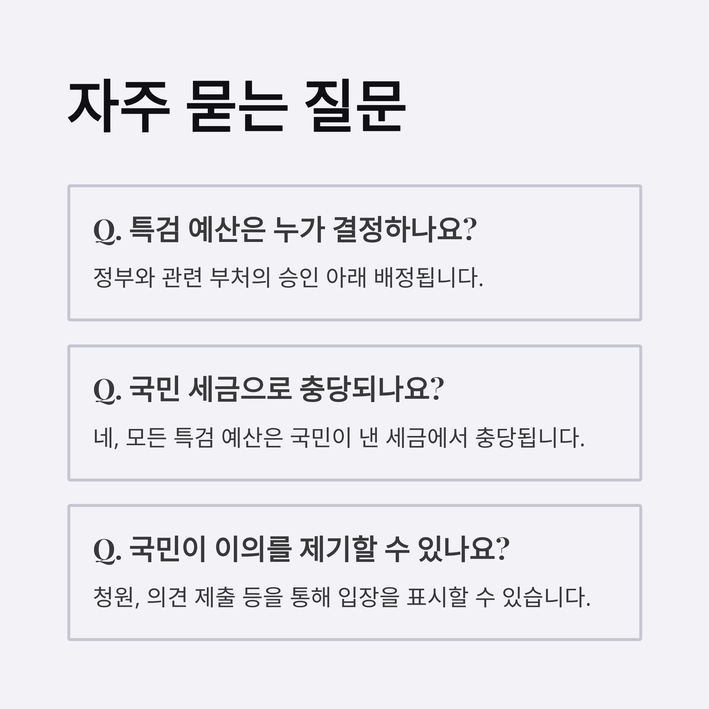 | Q. 특검의 예산 정보는 어디서 확인할 수 있나요? |