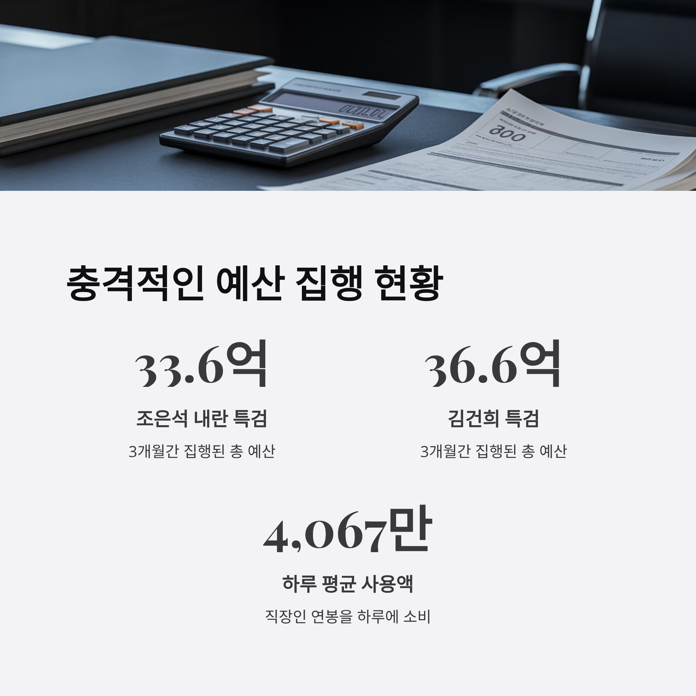 - 조은석 내란 특검과 김건희 여사 특검은 3개월간 각각 33억 6천만 원, 36억 6천만 원의 예산을 집행했습니다.