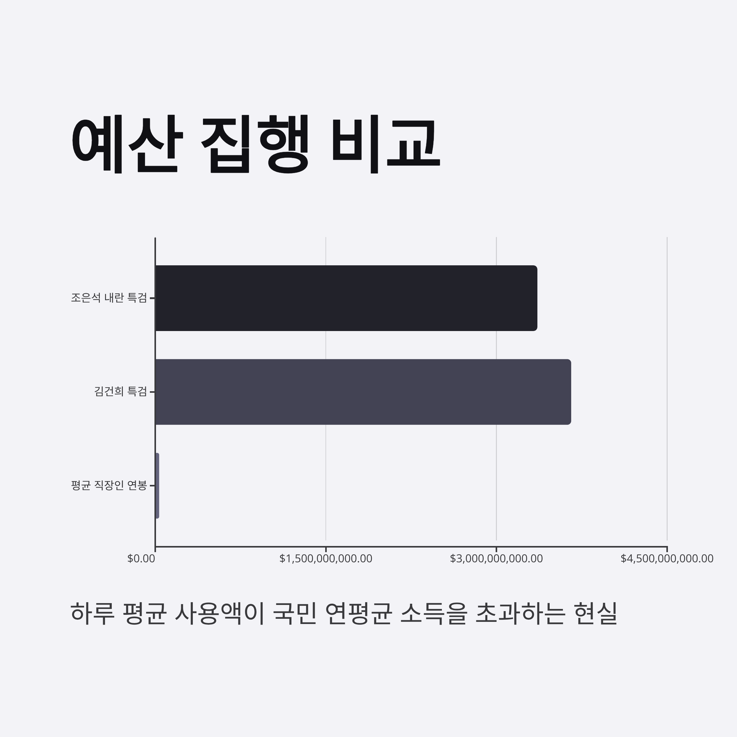 대다수 직장인의 연간 소득에 상응하는 3천만 원에서 4천만 원이라는 금액이 특검에서 단 하루 만에 소비되고 있다는 소식은 많은 이들의 이목을 집중시키고 있습니다. 조은석 내란 특검과 김건희 여사 특검에서 집행한 예산이 3개월 동안 각각 33억 6천만 원, 36억 6천만 원에 달하며, 이는 매일 수천만 원 규모의 세금이 사라지고 있음을 의미합니다. 특검 활동이 '정의 실현'이라는 이름으로 진행되고 있음에도 불구하고, 그 실효성에 대한 의문과 비용 집행의 투명성을 요구하는 목소리가 커지고 있습니다. 과연 이러한 특검 운영이 국민의 세금을 정당하게 활용하고 있는지 알아볼 필요가 있습니다.