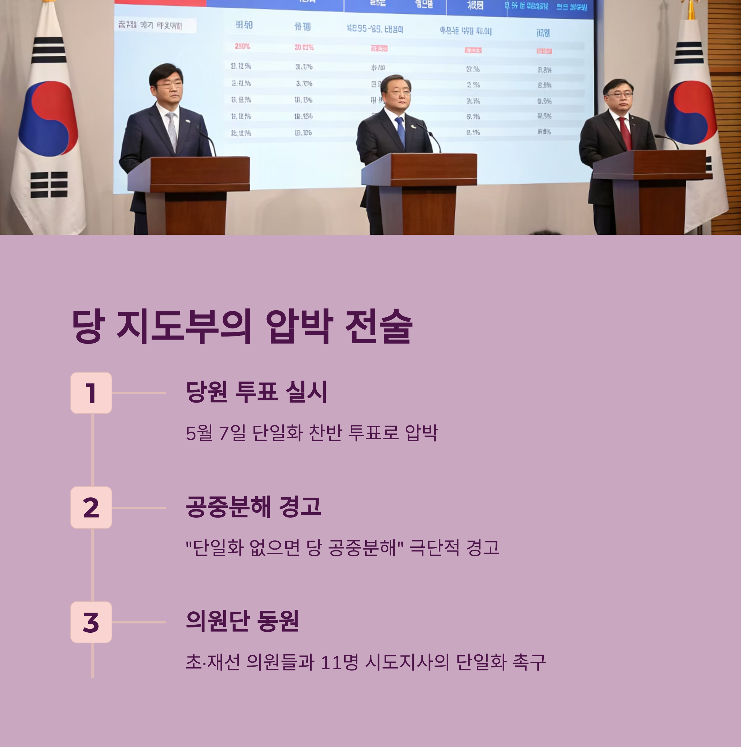 • 단일화 실패 시 후보 교체 및 전당대회 강행 가능성도