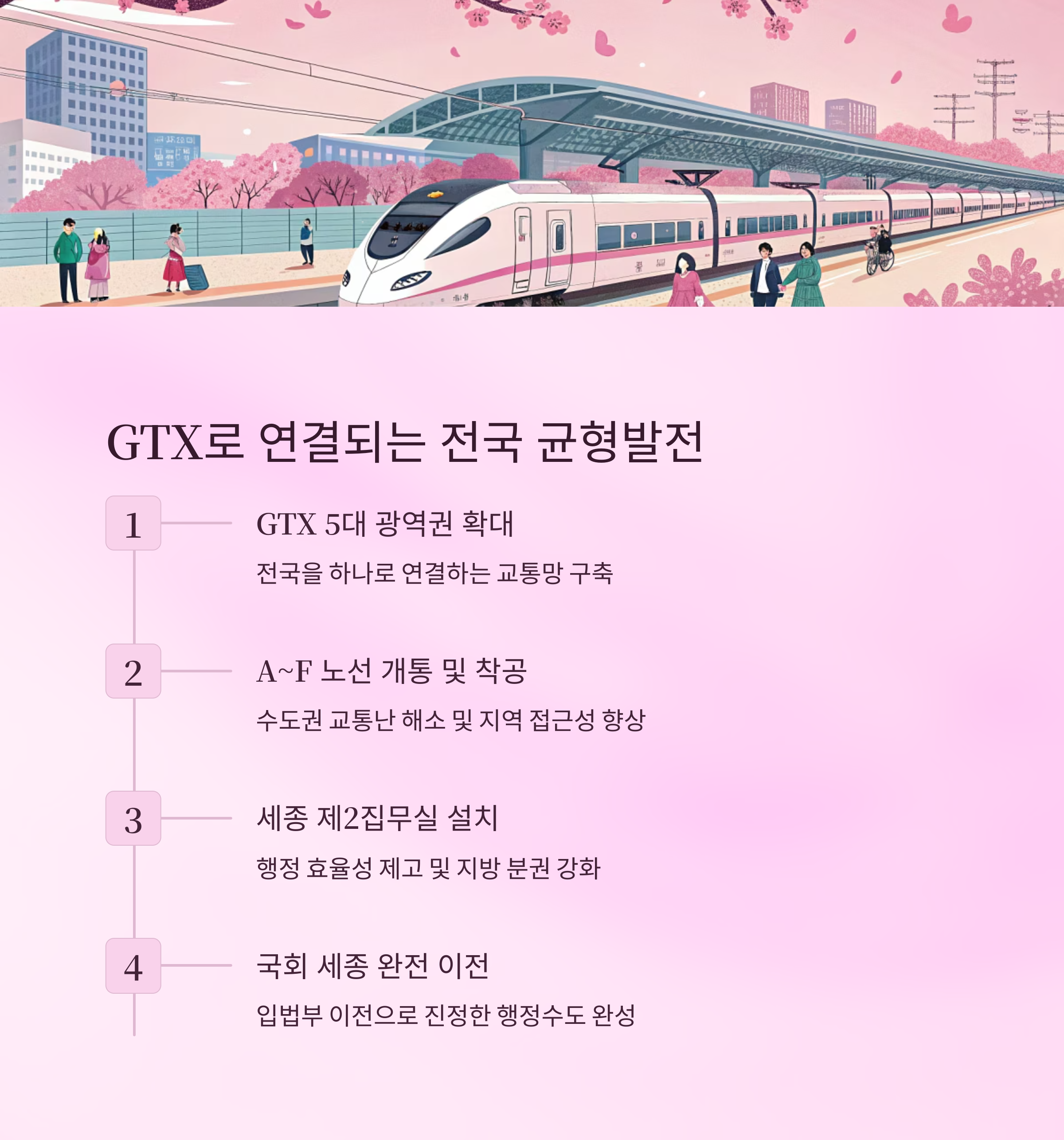 - GTX 전국 5대 광역권 확대, A~F 노선 개통 및 착공