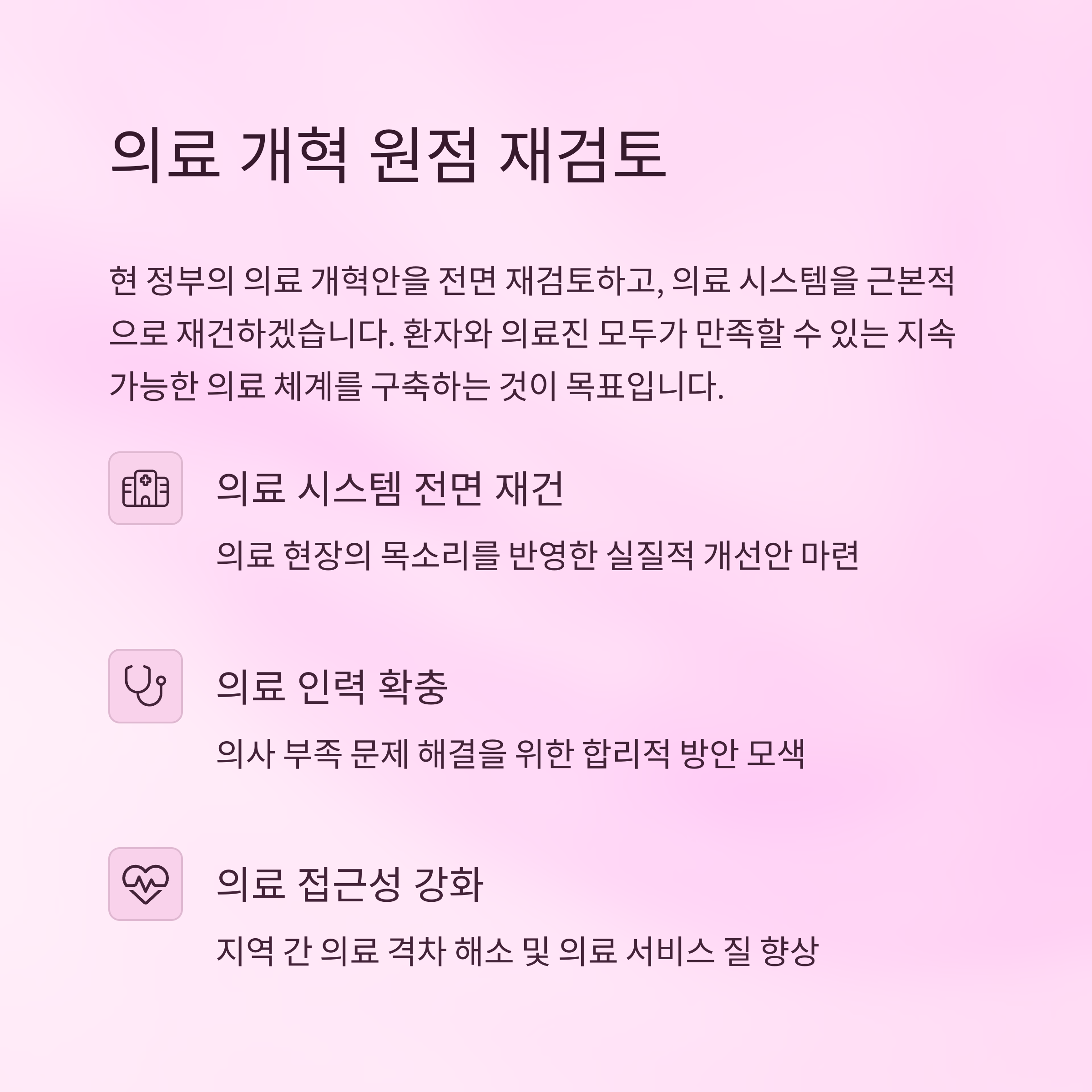 - 의료시스템 전면 재건, 개혁안 전면 재검토