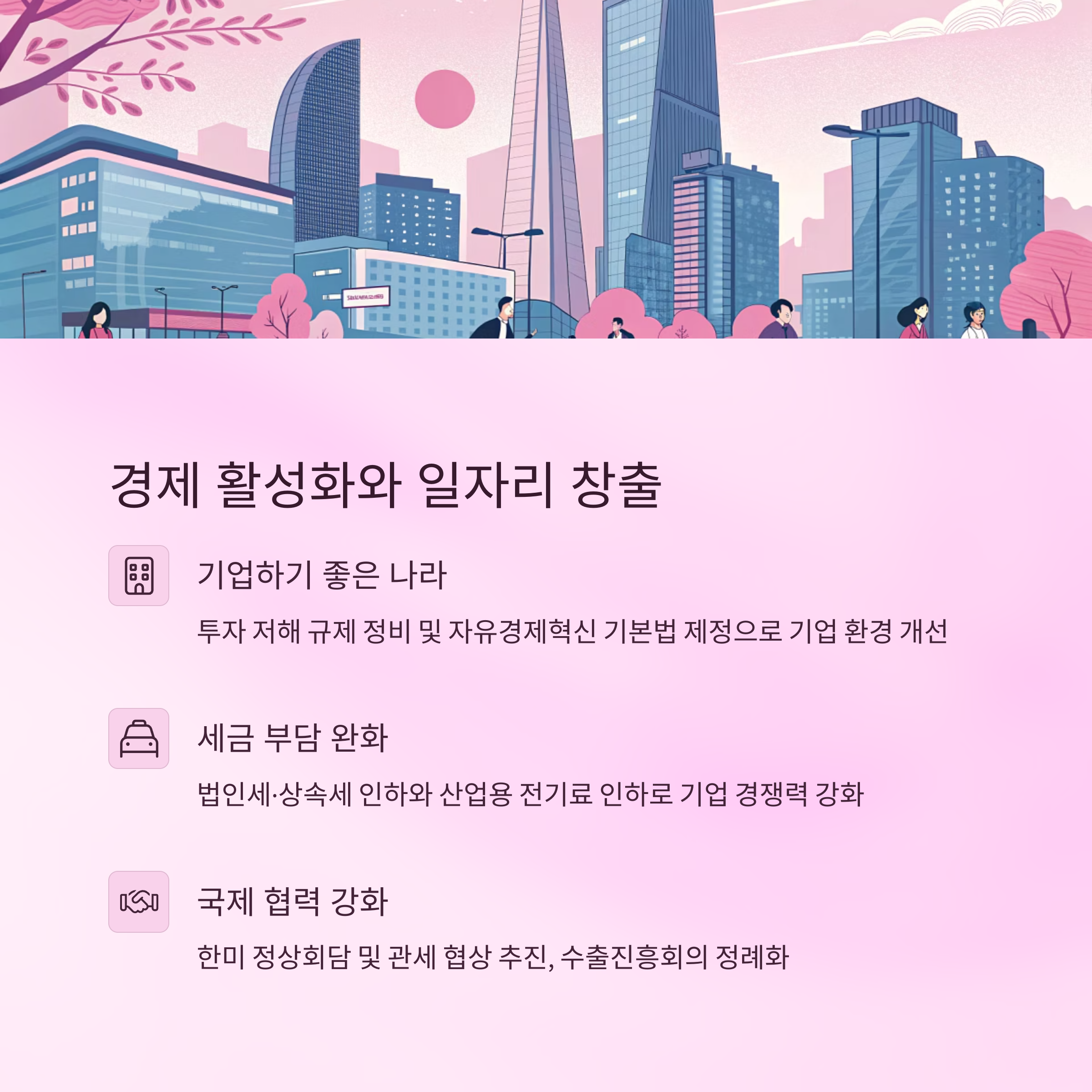 - 투자 저해 규제 정비, 자유경제혁신 기본법 제정