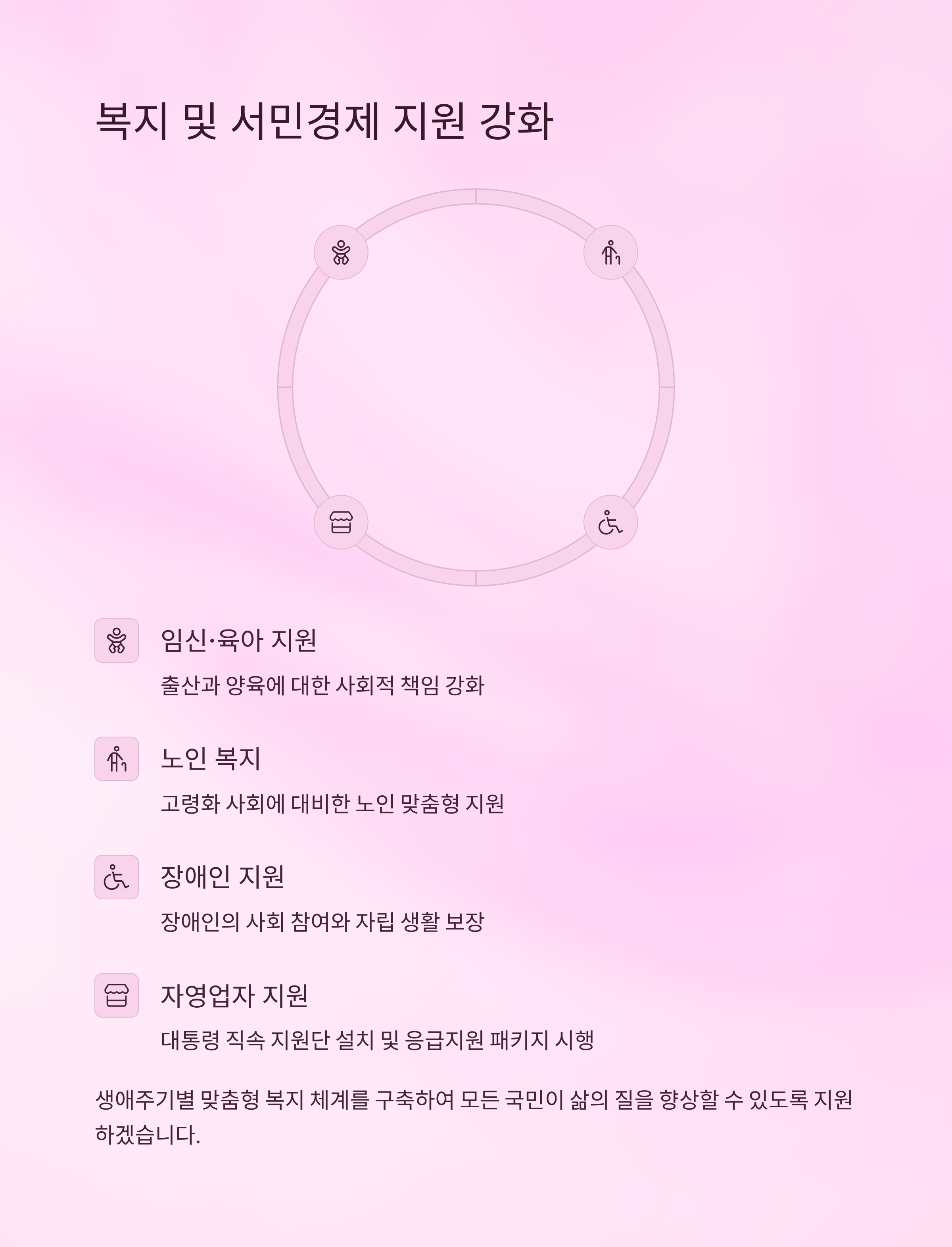 - 임신·육아·노인·장애인 등 생애주기별 맞춤 지원 강화
