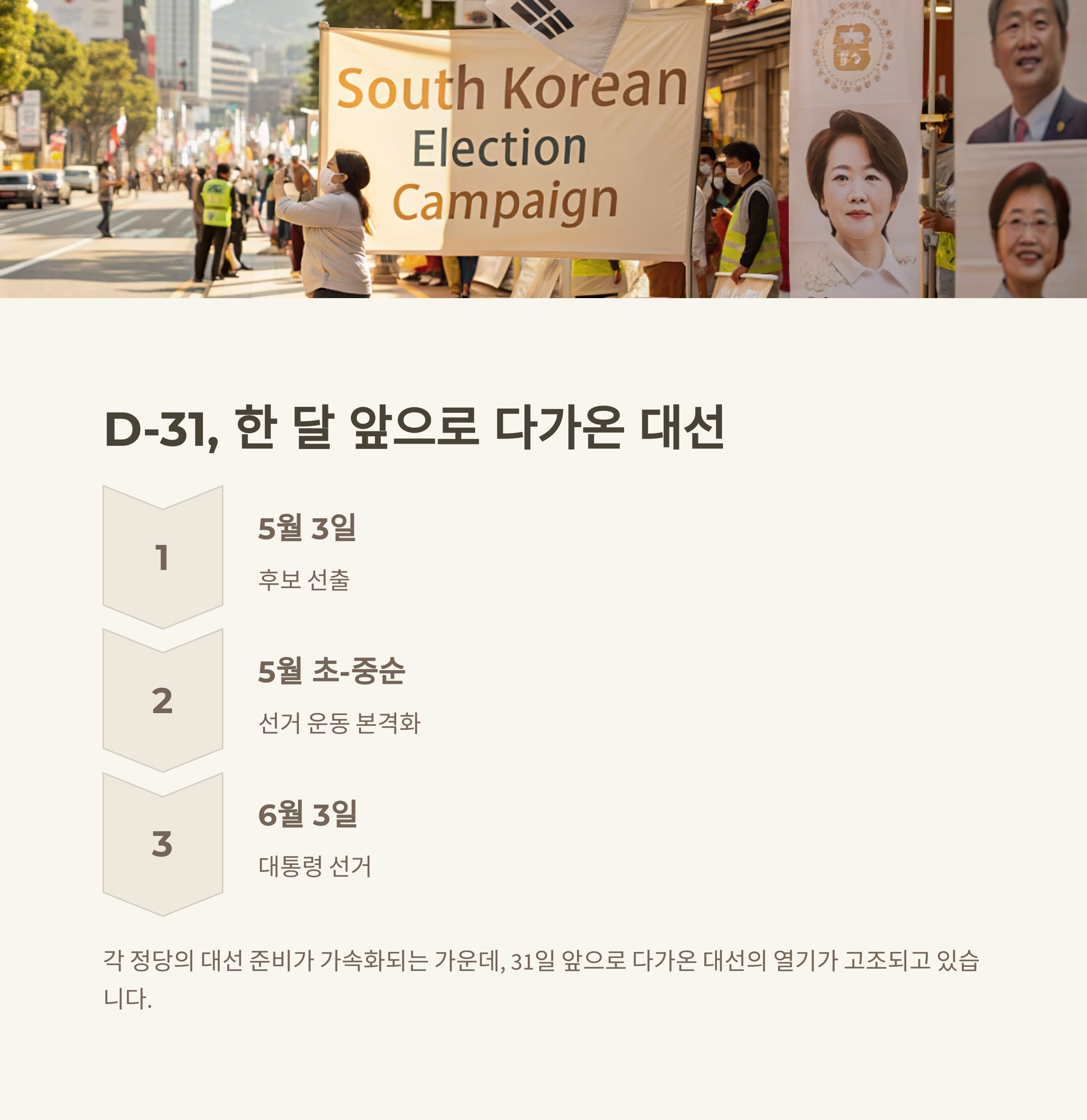 5. 6월 3일 조기 대선까지 남은 시간은 31일입니다.