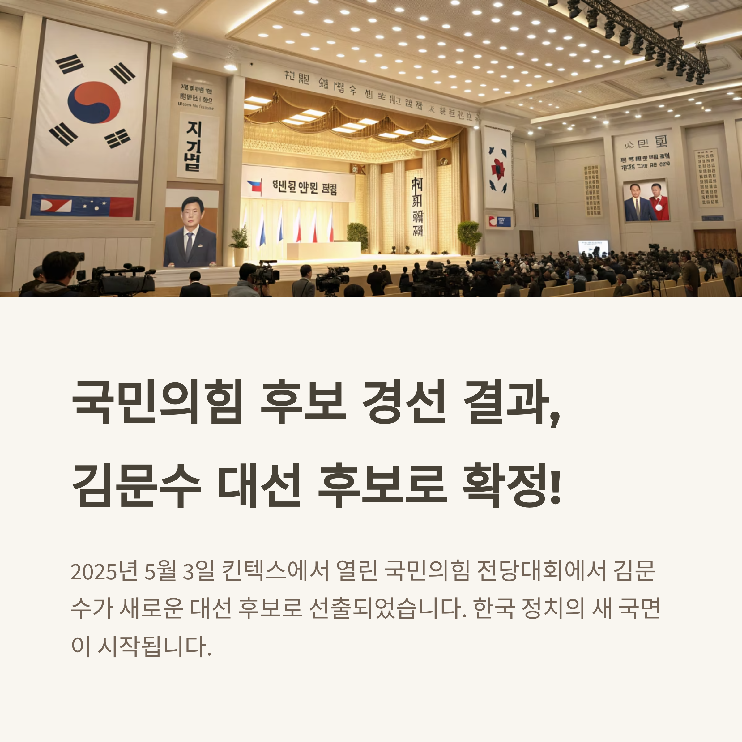 1. 김문수가 국민의힘 대선 후보로 선출되었습니다.