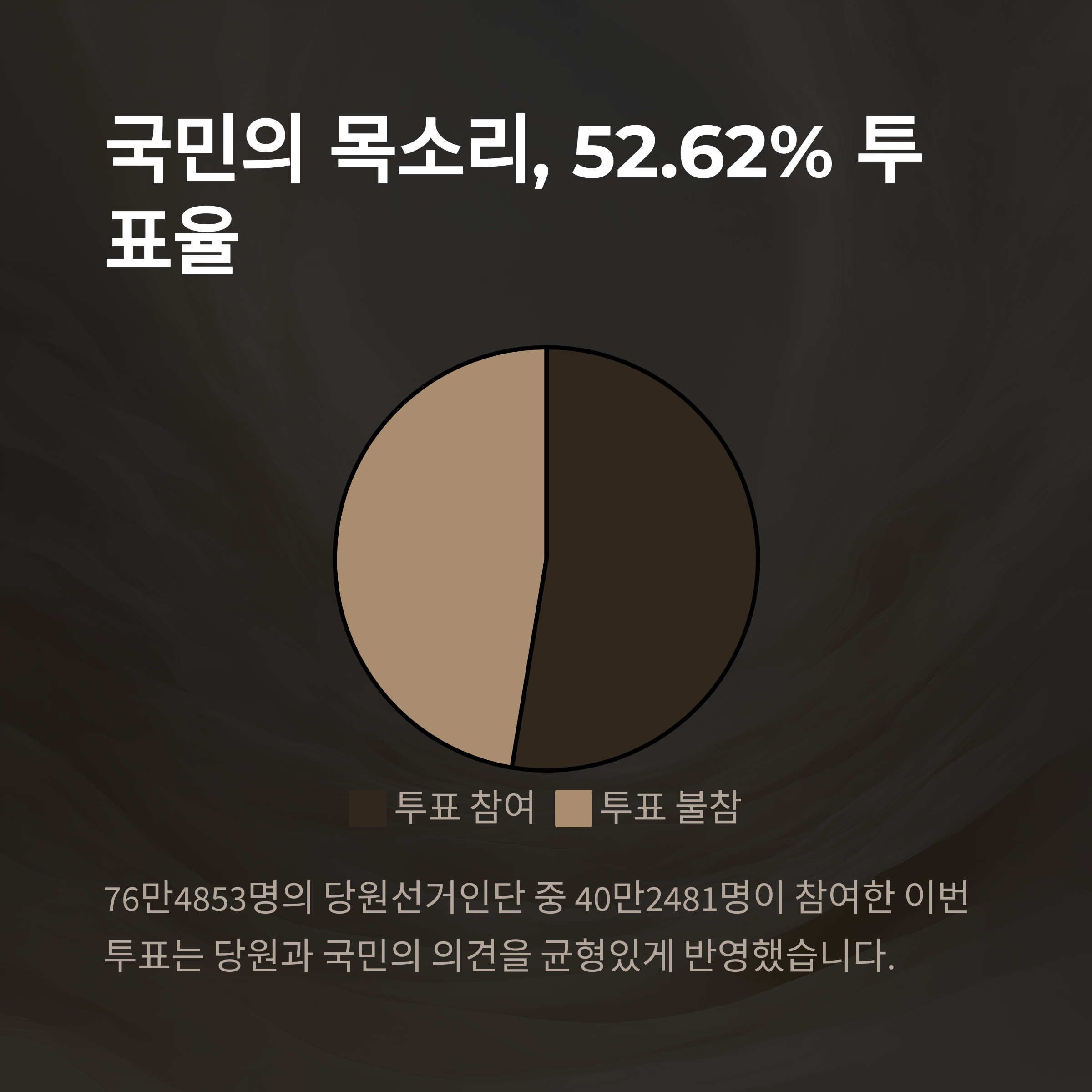 2. 투표율은 52.62%, 총 당원 및 국민 여론 결과 반영.