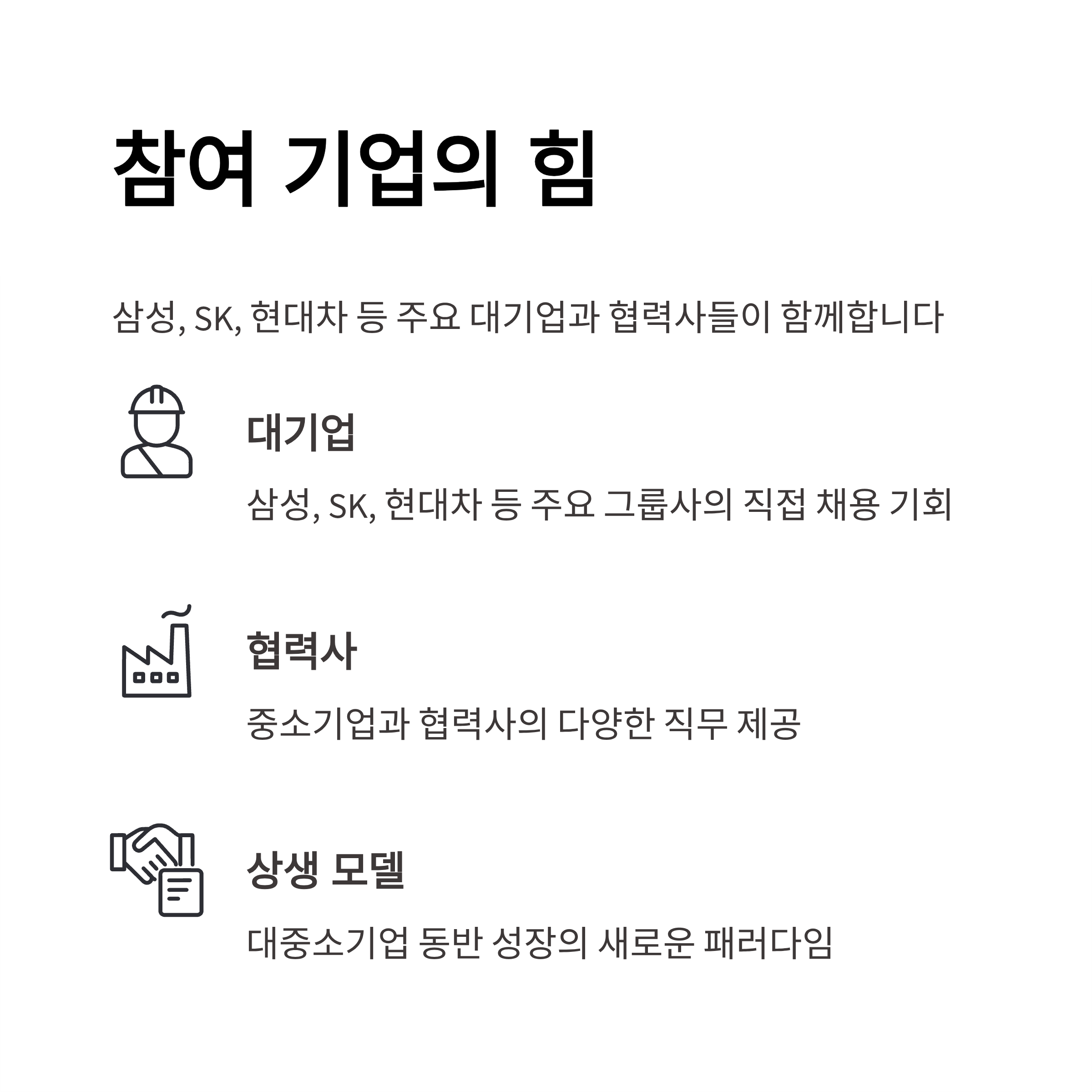 2. 주요 대기업과 중소기업들이 협력해 다양한 직업 기회가 청년들에게 제공됩니다.