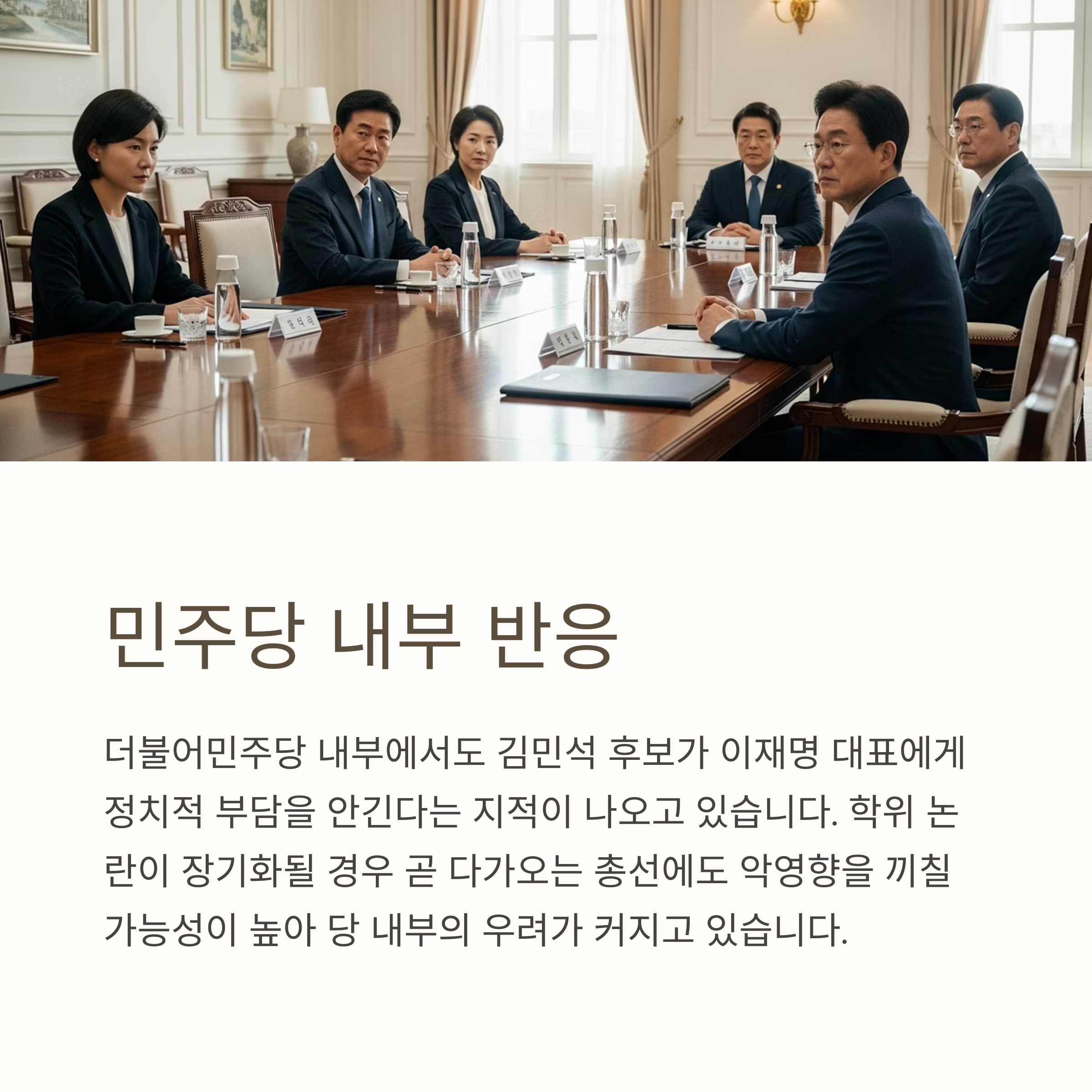 특히 더불어민주당 내부에서도 김 후보가 이재명 대표에게 정치적 부담을 안긴다는 지적이 나오고 있으며, 학위 논란이 장기화될 경우 총선에도 악영향을 끼칠 가능성이 큽니다.