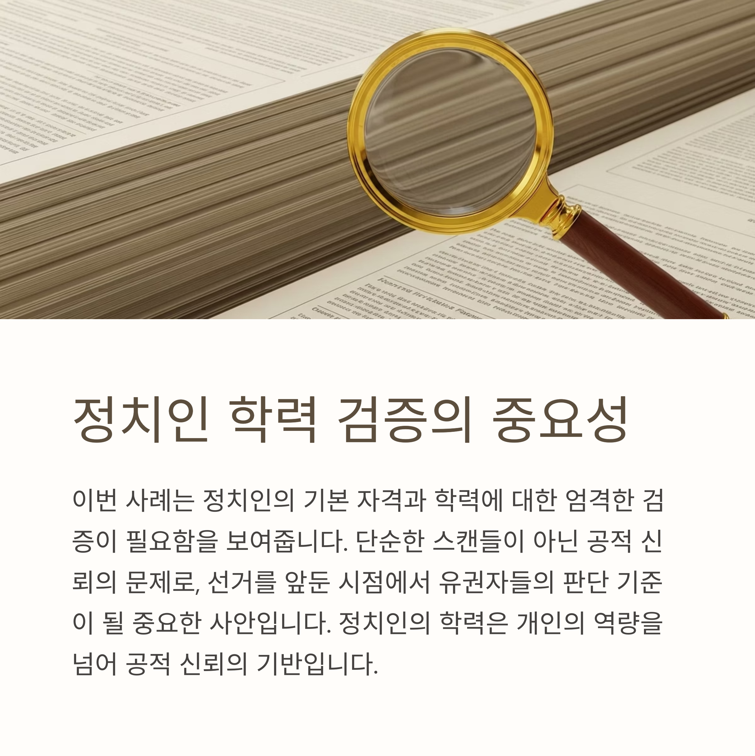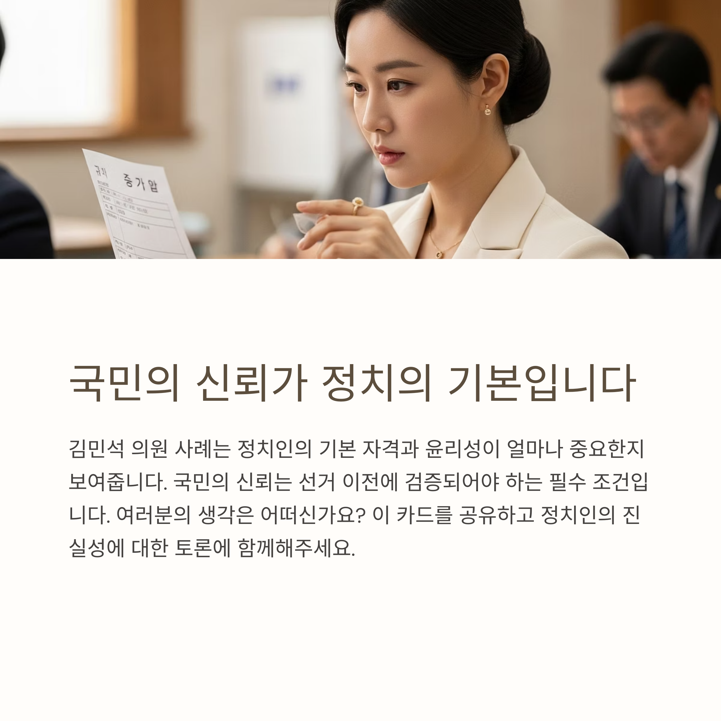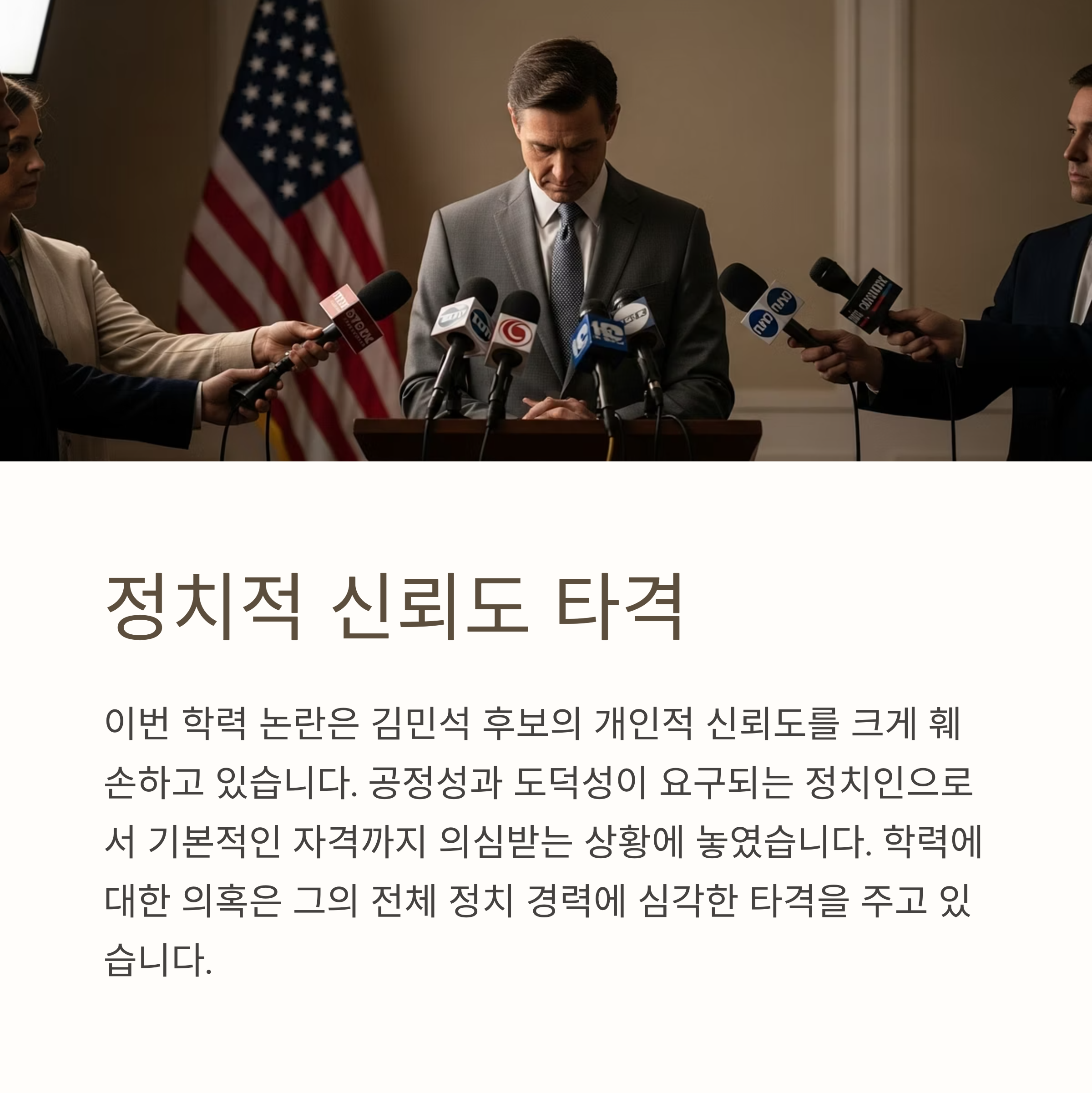 국민의 눈높이는 점점 더 높아지고 있습니다. 학력 위조 의혹은 단순한 스캔들이 아니라, 전체 정치에 대한 불신을 유발할 수 있는 중대한 문제입니다. 김민석 후보는 이 논란에 대해 명확하고 투명한 해명을 내놓아야 할 시점이며, 더불어민주당 역시 이에 대한 책임 있는 대응이 필요합니다.