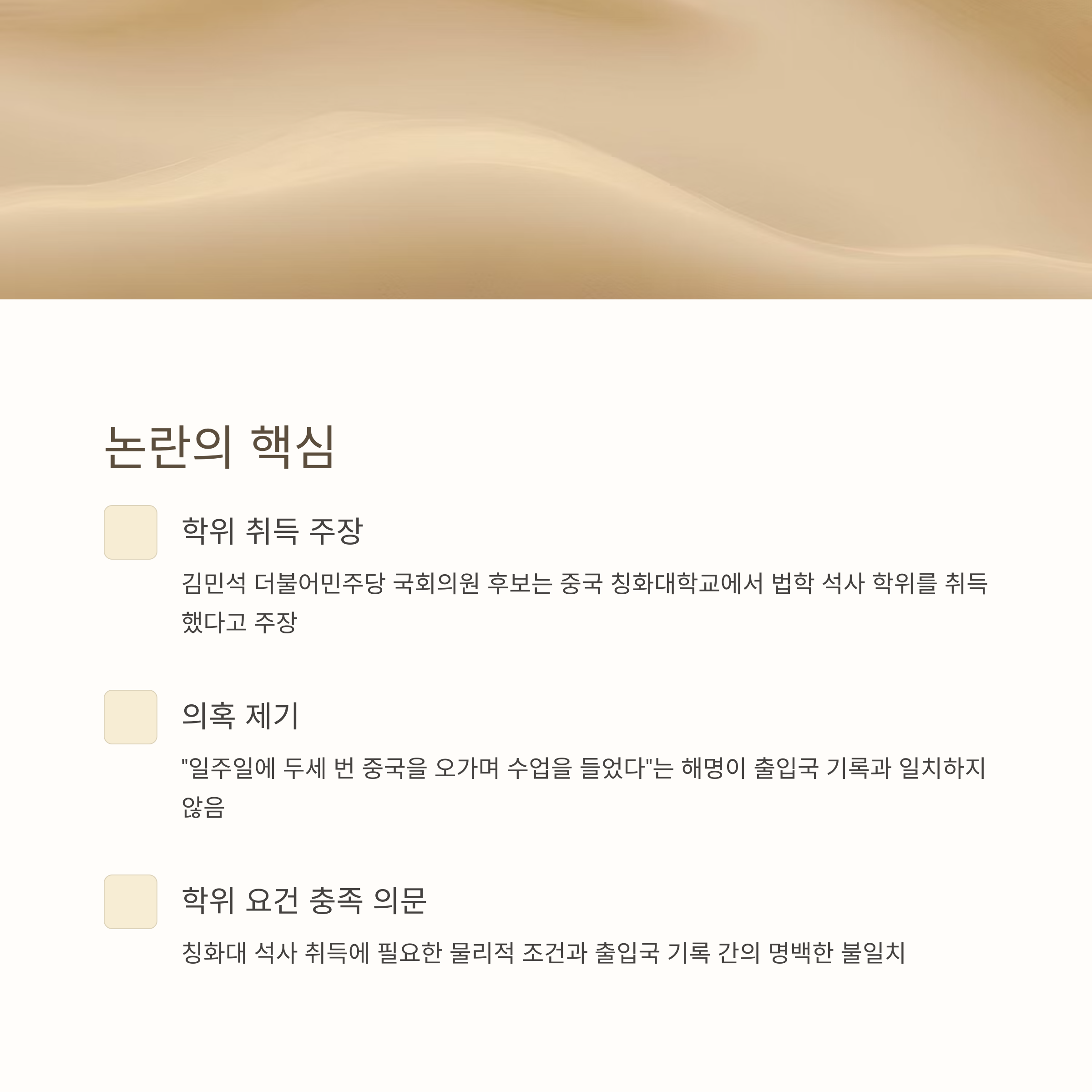 이번 글에서는 김민석 후보의 출입국 기록과 칭화대 석사 취득 요건을 면밀히 검토한 뒤, 그의 해명이 실제와 어떻게 불일치하는지 정밀하게 분석하겠습니다. 독자 여러분께서는 이 글을 통해 정치인의 학력 신뢰도 문제와 공정성에 대한 중요한 질문을 함께 고민할 수 있을 것입니다.