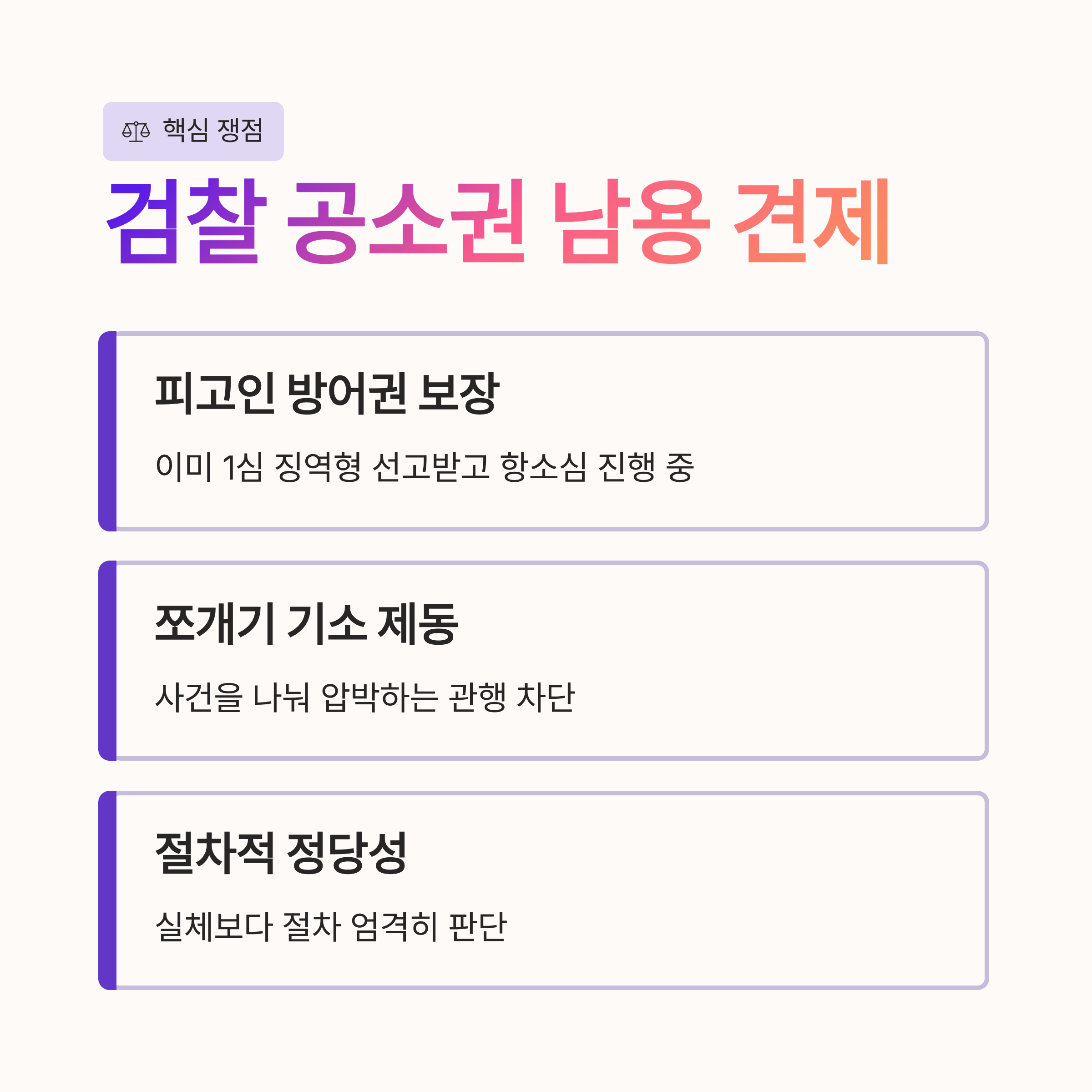 이는 동일 사건으로 피고인을 괴롭히는 검찰의 공소권 남용을 견제한 판결로 해석됩니다.