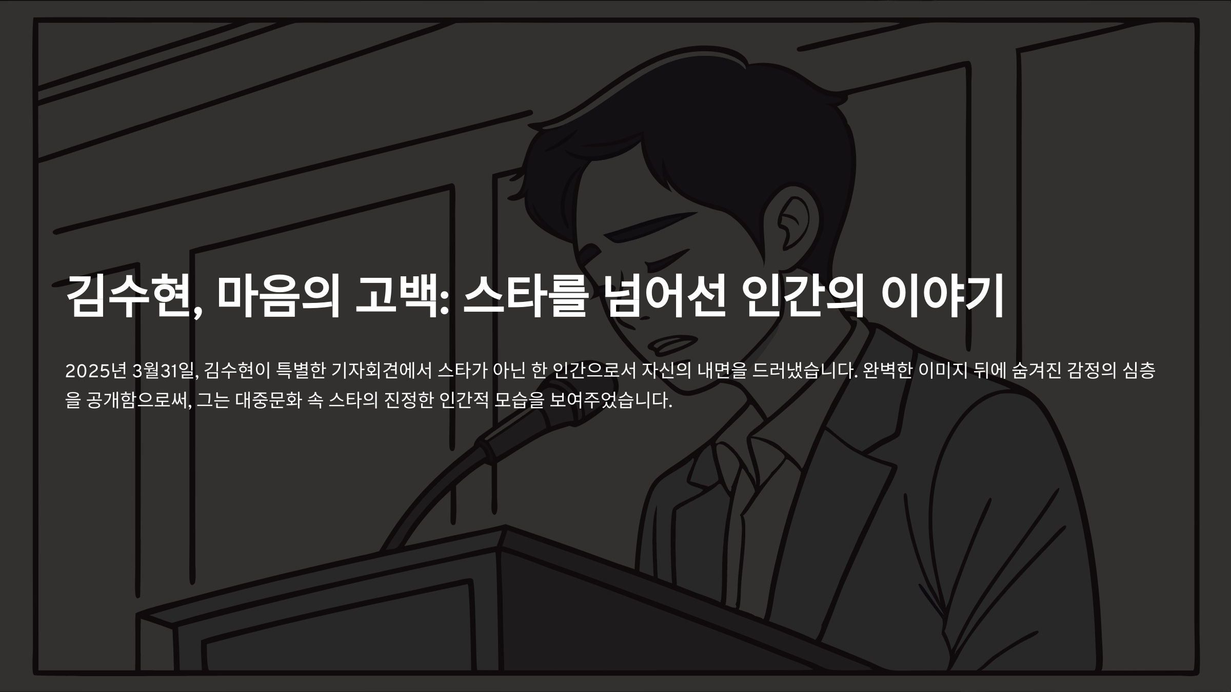 2025년 4월, 김수현이라는 이름은 단지 배우가 아닌 한 인간으로서 우리 앞에 섰습니다. 카메라 앞에서 그는 ‘겁쟁이였다’고 말하며 수년간 숨겨온 감정과 갈등을 쏟아냈습니다. 이 회견은 해명이나 변명이라기보다 ‘심리적 고백’에 가까웠습니다. 대중의 사랑을 받는 스타이기에 더욱 숨길 수밖에 없었던 감정들, 그 억눌린 마음의 실체를 이제 들여다볼 시간입니다.