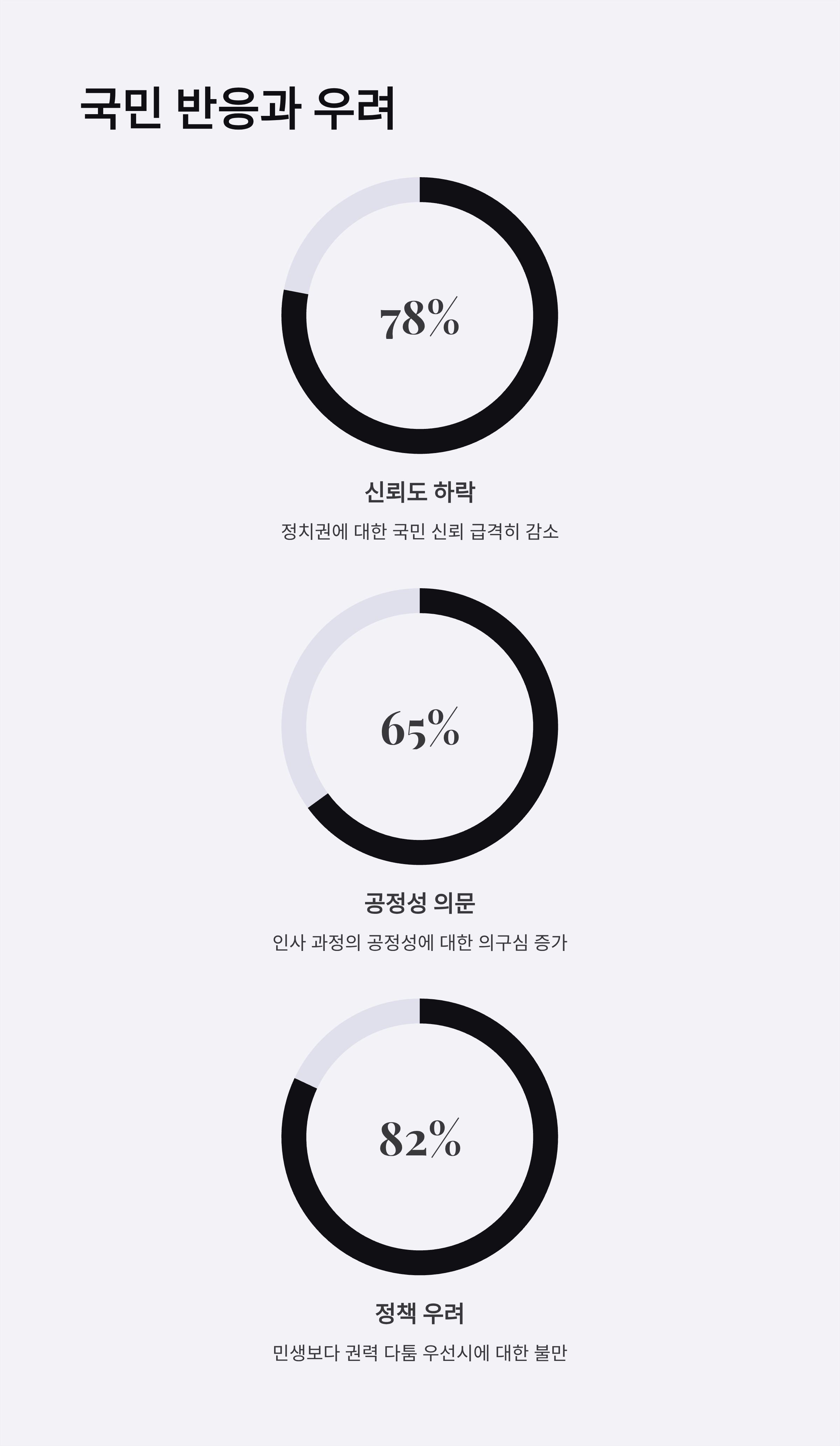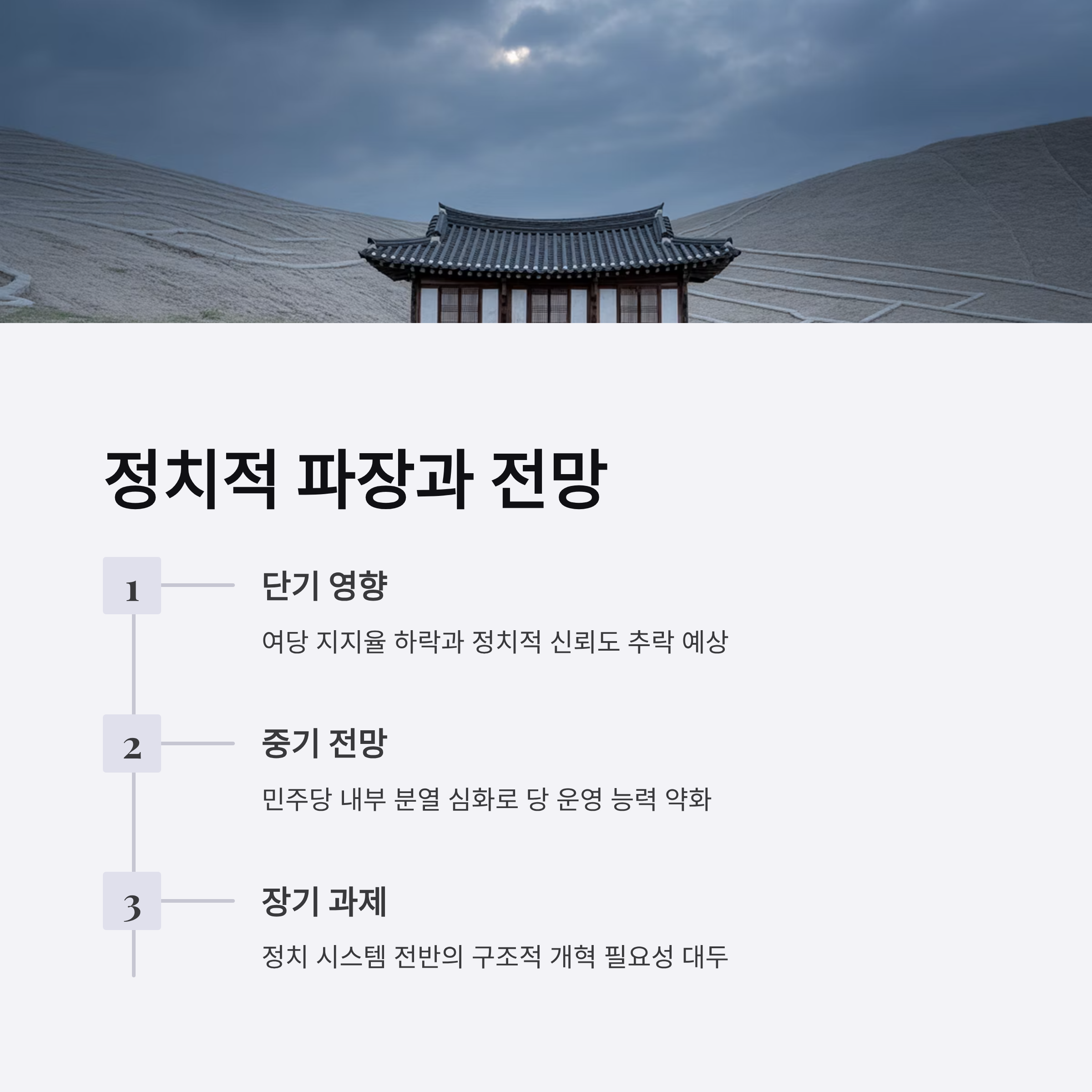 갈등은 단순한 내부 문제를 넘어 당의 정책 방향에도 심각한 영향을 미치고 있습니다. 국민들은 이러한 분열이 민주당의 신뢰와 정책 수행 가능성을 약화시킬 수 있음을 우려하고 있습니다. 이는 단순히 특정 정치인에 대한 비판이 아니라, 민주당 조직 전체의 미래에 대한 질문으로 이어집니다.