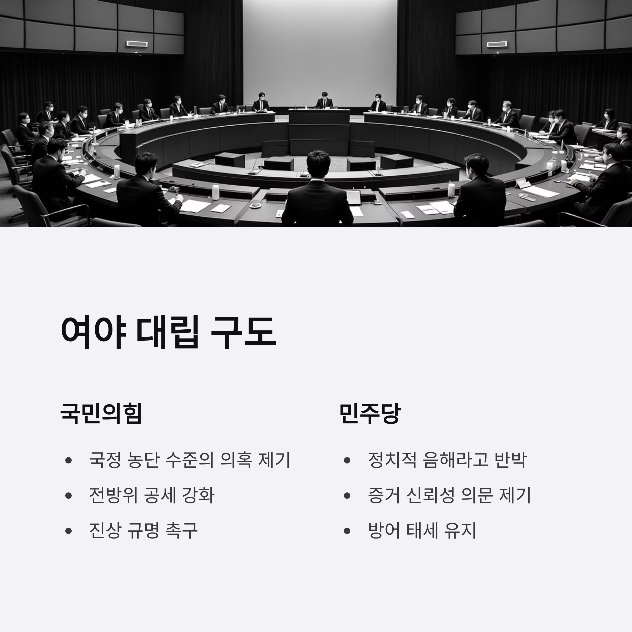 - 국민의힘과 민주당 간 대립