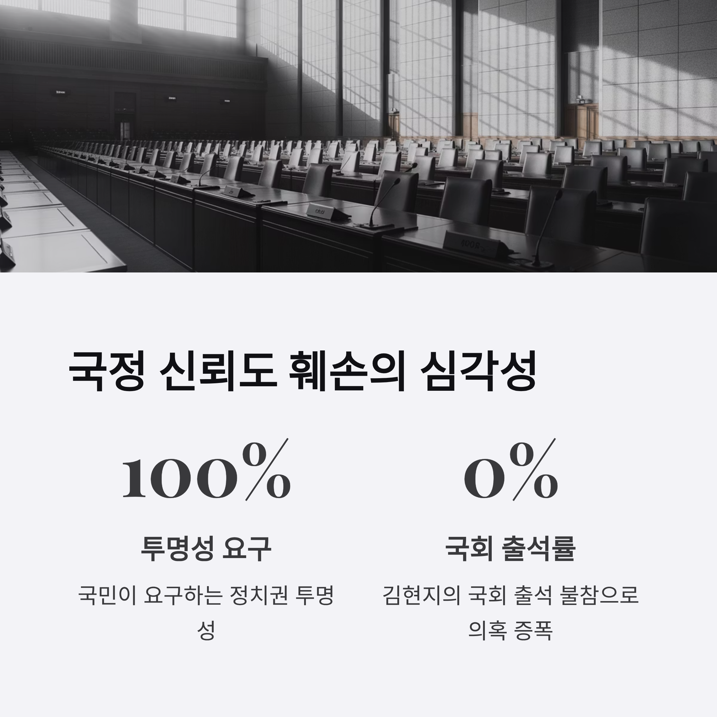 김현지가 논란의 중심에 선 이유는 단순히 개인의 비리 의혹을 넘어 대통령실의 중요 업무 운영에 개입했다는 가능성 때문입니다. 관례를 벗어난 업무 처리 및 인사 개입은 국정의 투명성과 신뢰도를 크게 훼손할 수 있는 행위로 간주됩니다. 게다가, 그녀가 국회 출석 불참으로 여러 의혹을 보다 명확히 해소할 기회를 놓친 점도 비판의 대상이 되었습니다.