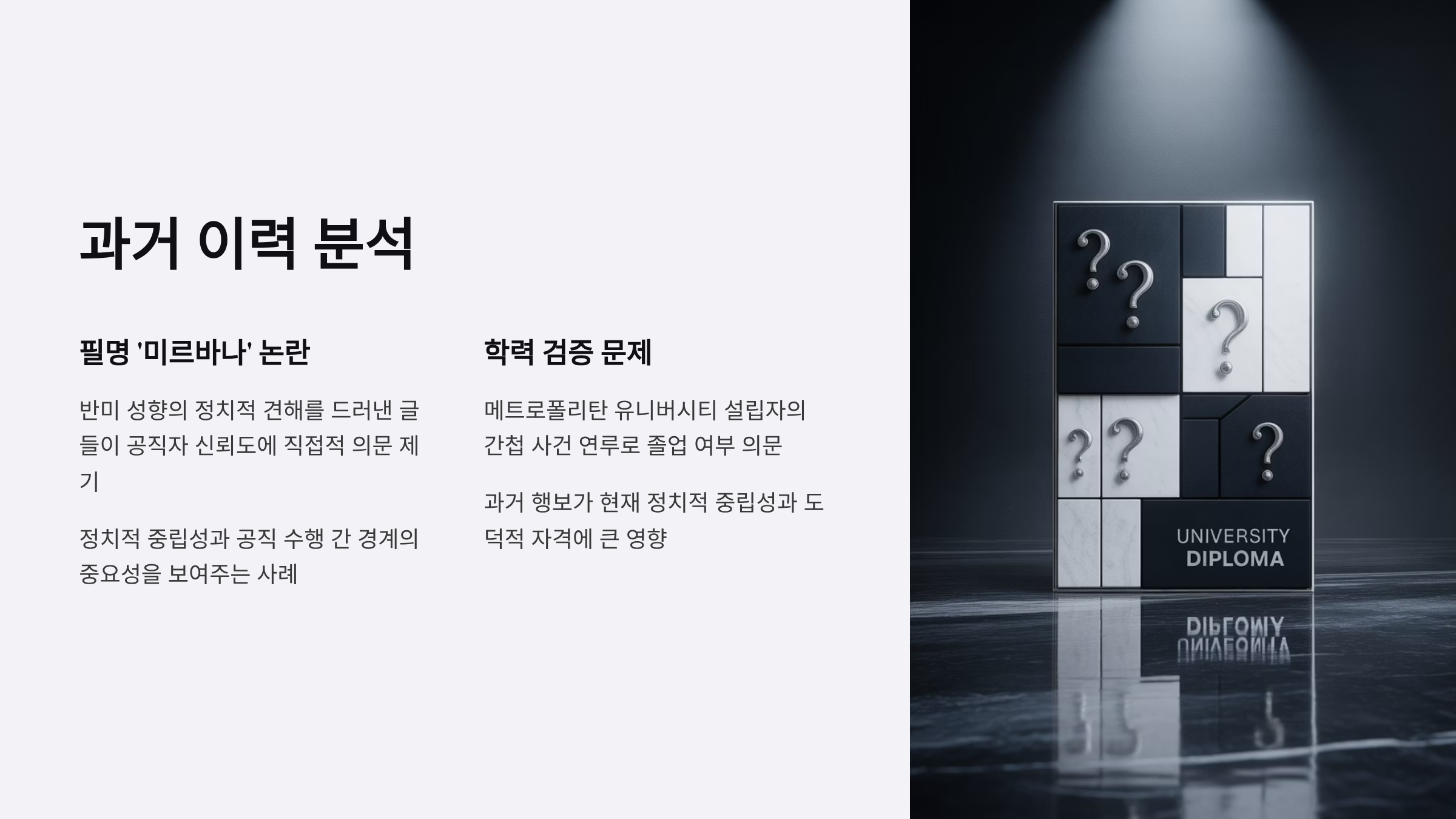 - 의혹에 대한 주요 논거