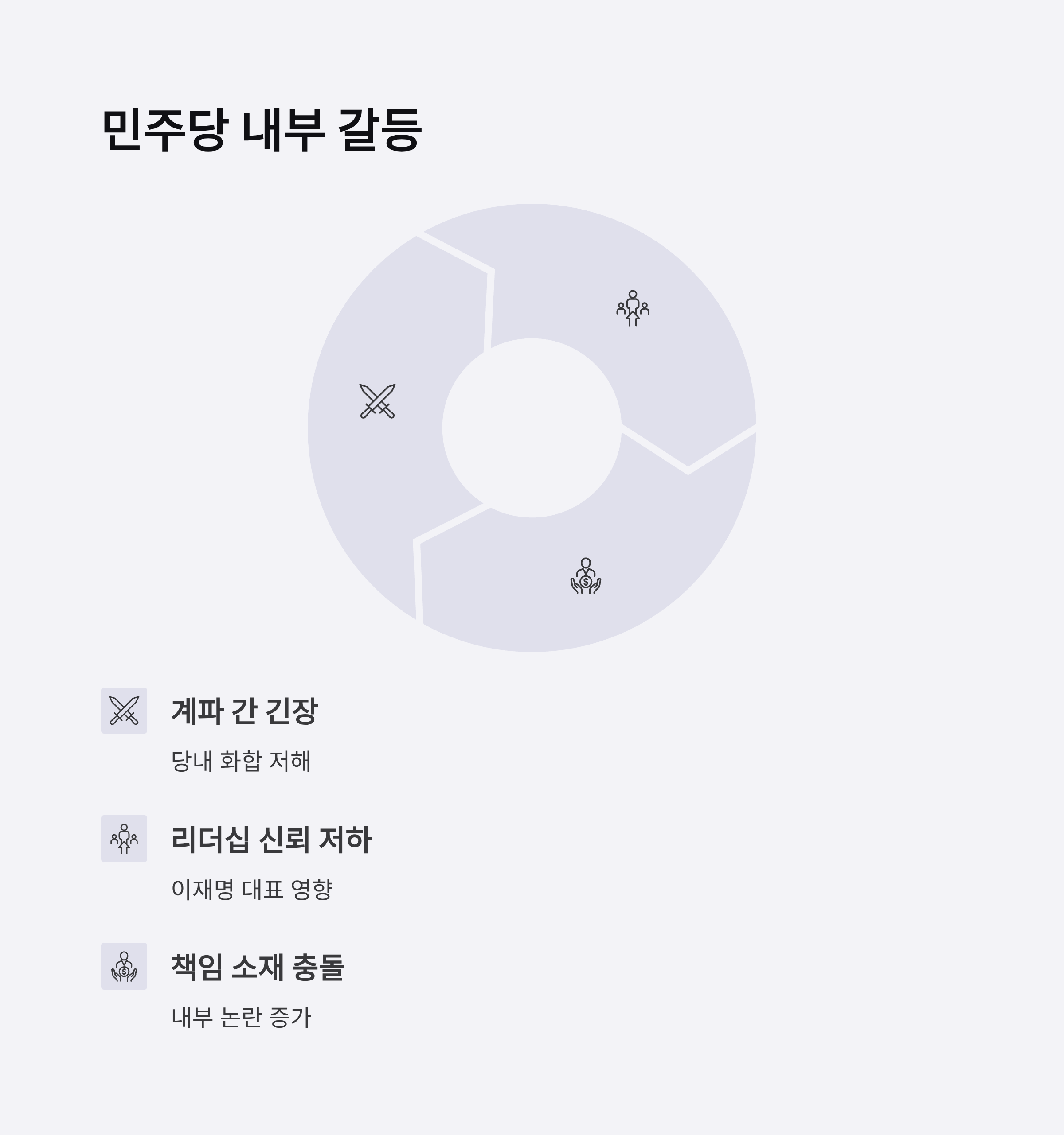 김현지의 국회 출석 거부, 과거 행적 및 현재 권력 누수 문제는 민주당 내에서 다양한 파장을 일으키고 있다. 특히 그녀의 부속실장 임명과 관련된 내외부적 논란은 이재명 대표의 리더십 신뢰도 저하로 이어지고 있다. 이는 민주당 내 계파 간 긴장 관계를 부각시키며, 당내 화합을 저해하고 있다는 지적도 나오고 있다. 그녀의 논란이 반복되며 민주당 내부에서는 책임 소재를 두고 충돌하는 사례가 증가하고 있다.