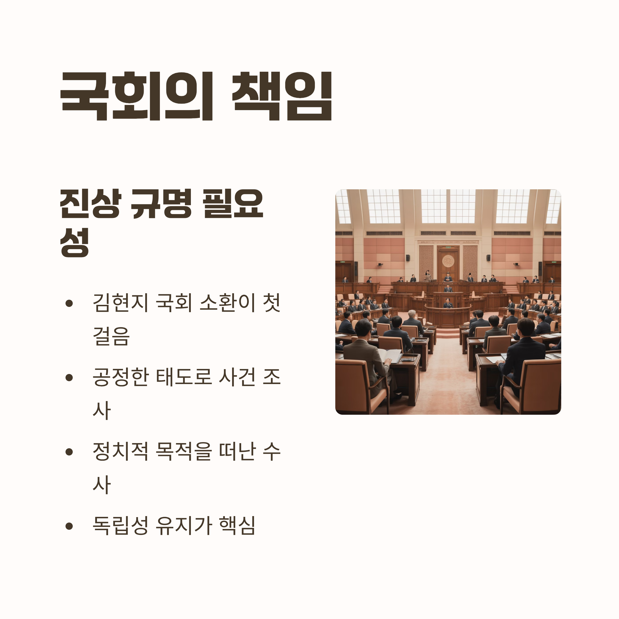 - 향후 수사와 국회의 역할