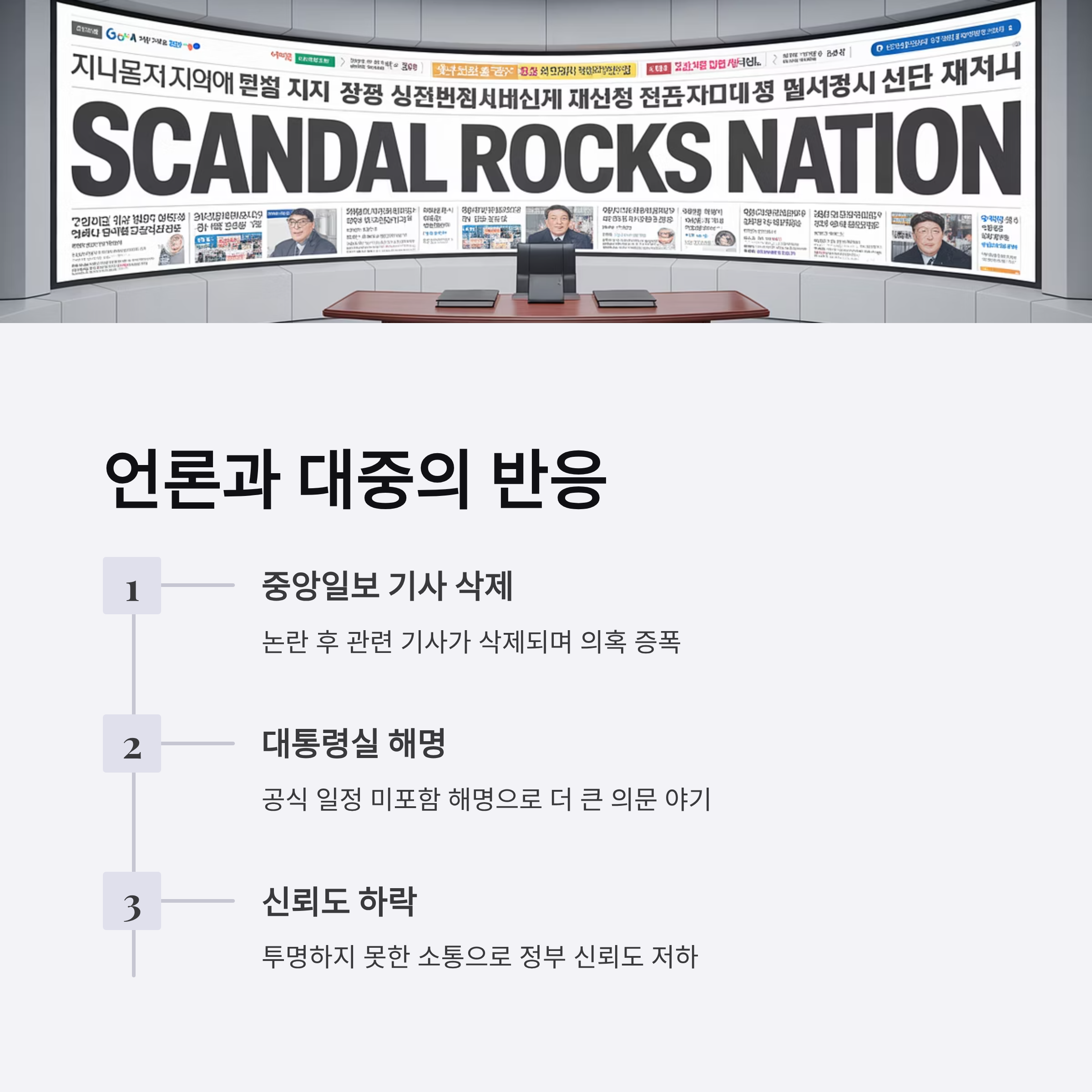 중앙일보의 기사 삭제와 대통령실의 해명은 대중들에게 더욱 큰 의문과 실망을 안겼습니다. 불참 논란 속에서 의사소통마저 투명하지 못했던 점은 정부 차원에서의 신뢰도를 낮추는 결과로 이어질 수 있습니다. 이는 대중과 언론의 비판이 단기적 논란에 머무르지 않고, 정책 결정 과정의 투명성과 리더십 평가로 이어질 가능성을 암시합니다.
