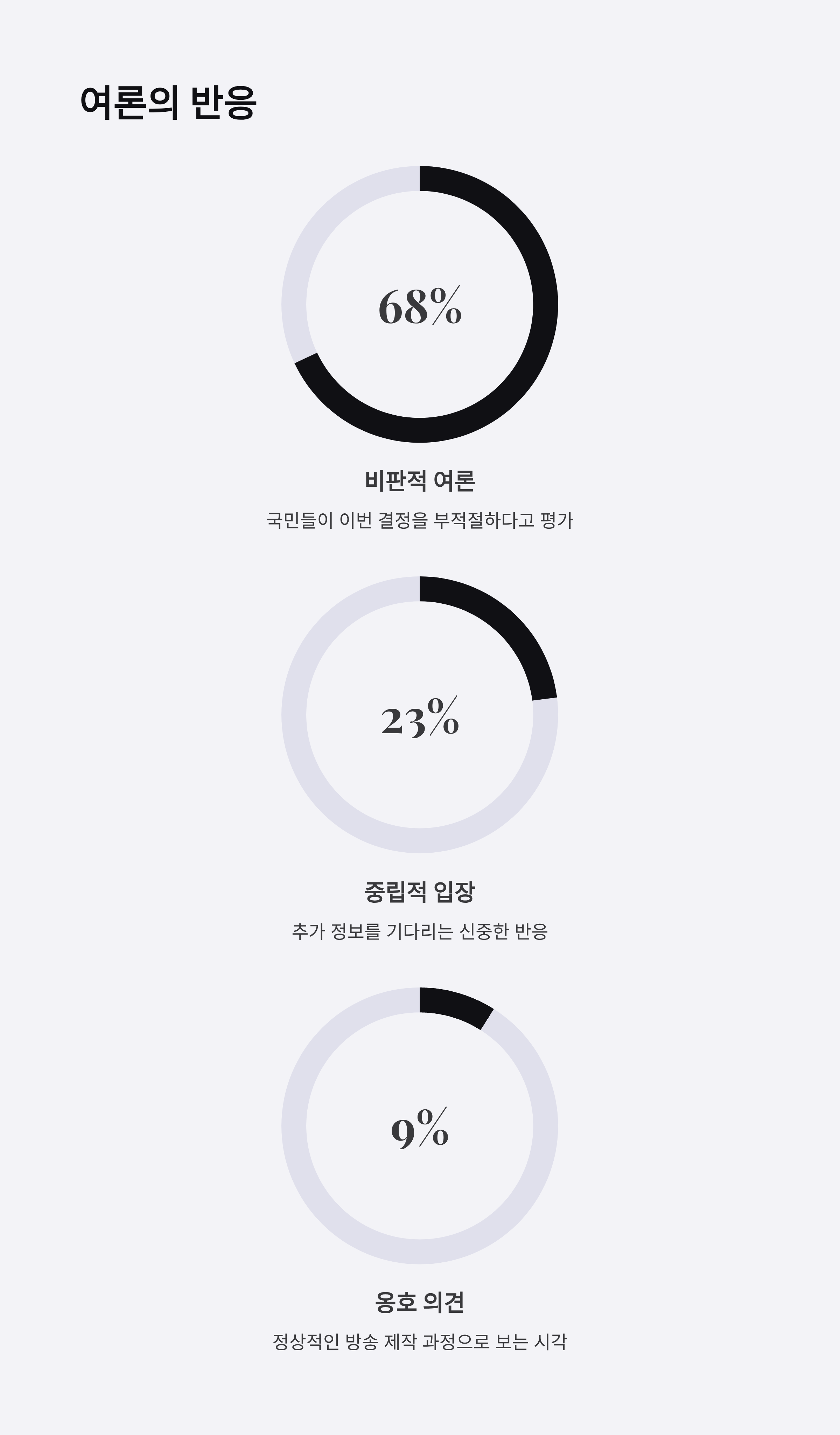 4. 여론은 이번 결정을 두고 비판을 이어가며 신뢰도 하락 우려를 나타냅니다.